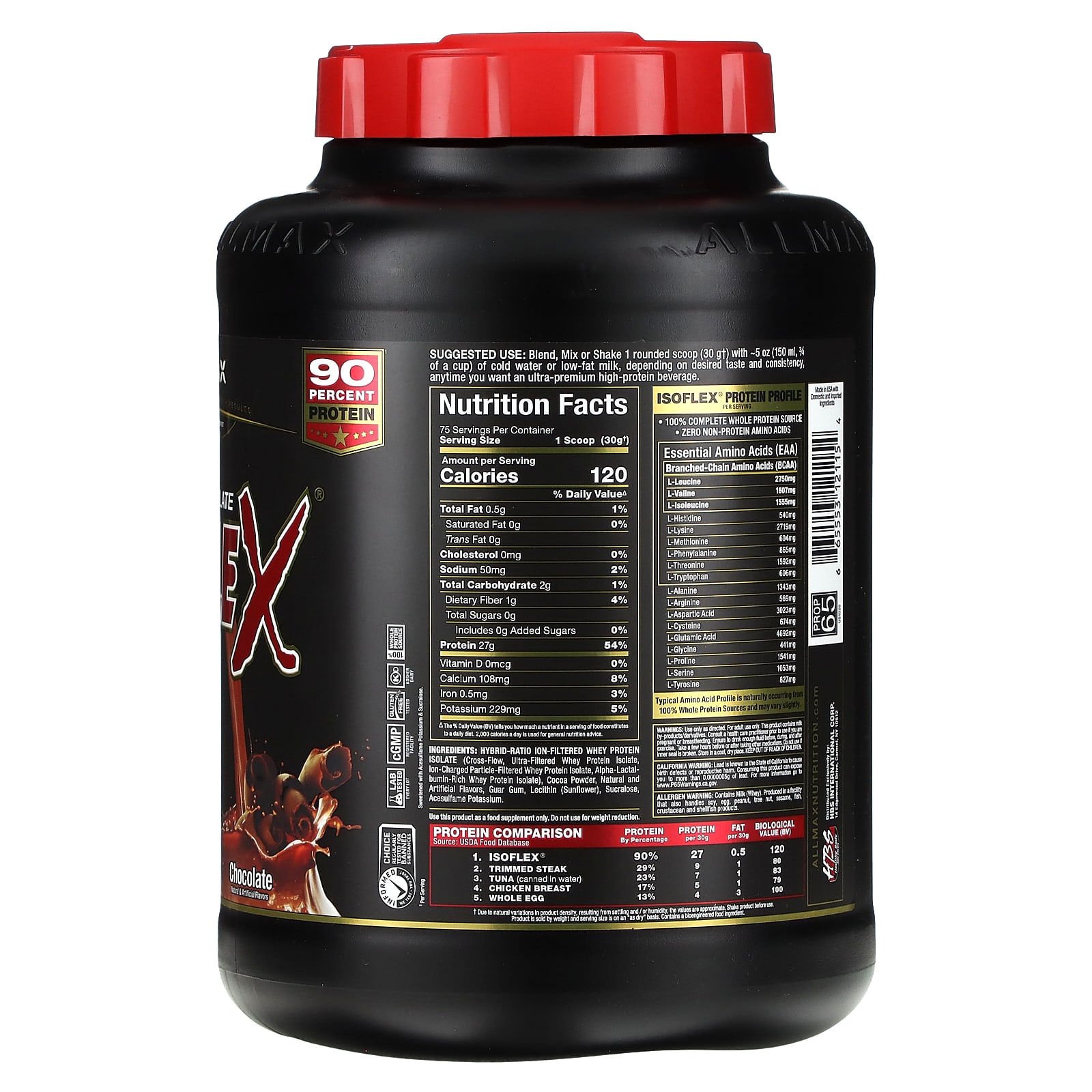 *Some information on the ALLMAX, ISOFLEX®, Pure Whey Protein Isolate, Chocolate, 5 lbs (2.27 kg)label may be missing, or it may have been written incorrectly. We work hard to keep the information accurate & up to date. Please let us know if you discover any errors.
