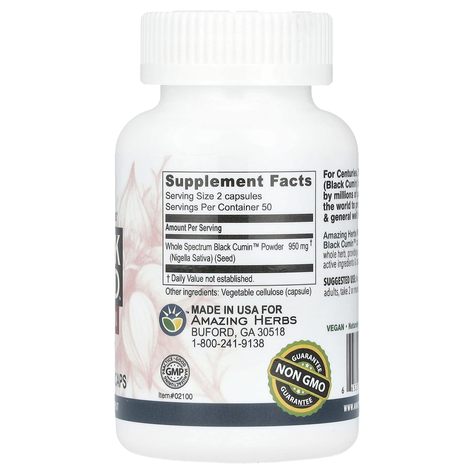 *Some information on the Amazing Herbs, Black Seed™, Original Plain, 100 Vegetarian Capslabel may be missing, or it may have been written incorrectly. We work hard to keep the information accurate & up to date. Please let us know if you discover any errors.
