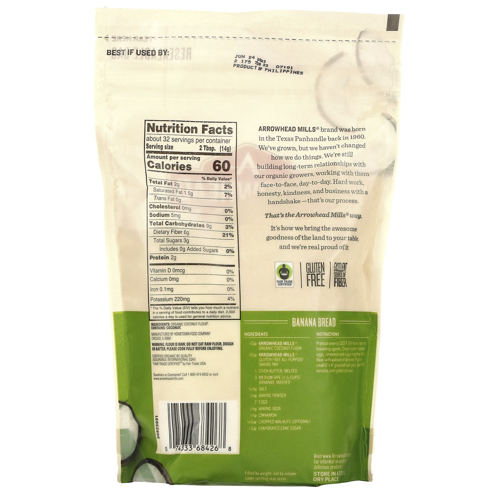 *Some information on the Arrowhead Mills, Organic Coconut Flour, Gluten Free, 16 oz (453 g)label may be missing, or it may have been written incorrectly. We work hard to keep the information accurate & up to date. Please let us know if you discover any errors.