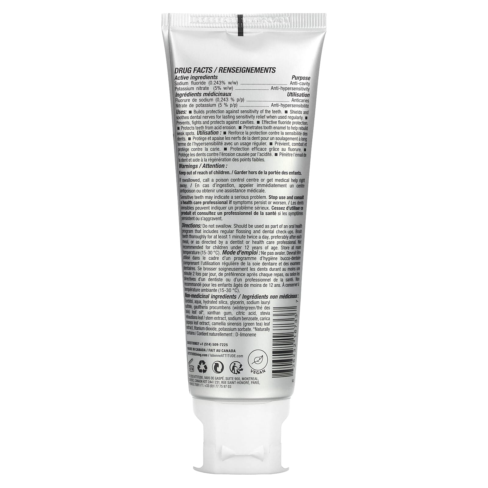 *Some information on the ATTITUDE, Sensitive Toothpaste Gel, Spearmint, 4.2 oz (120 g)label may be missing, or it may have been written incorrectly. We work hard to keep the information accurate & up to date. Please let us know if you discover any errors.