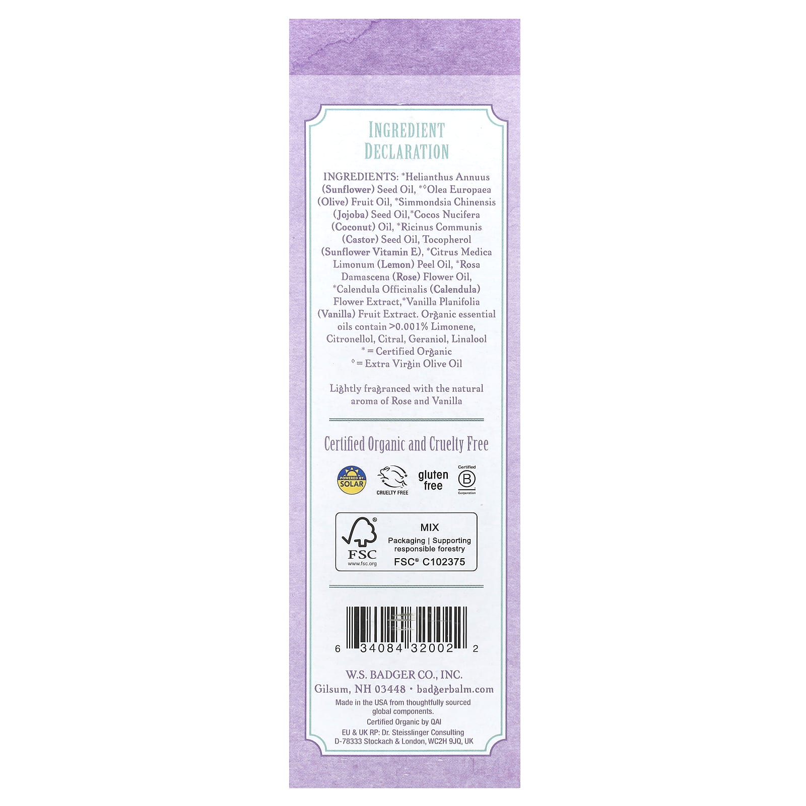 *Some information on the Badger, Pregnant Belly Oil, Rose & Vanilla, 4 fl oz (118 ml)label may be missing, or it may have been written incorrectly. We work hard to keep the information accurate & up to date. Please let us know if you discover any errors.