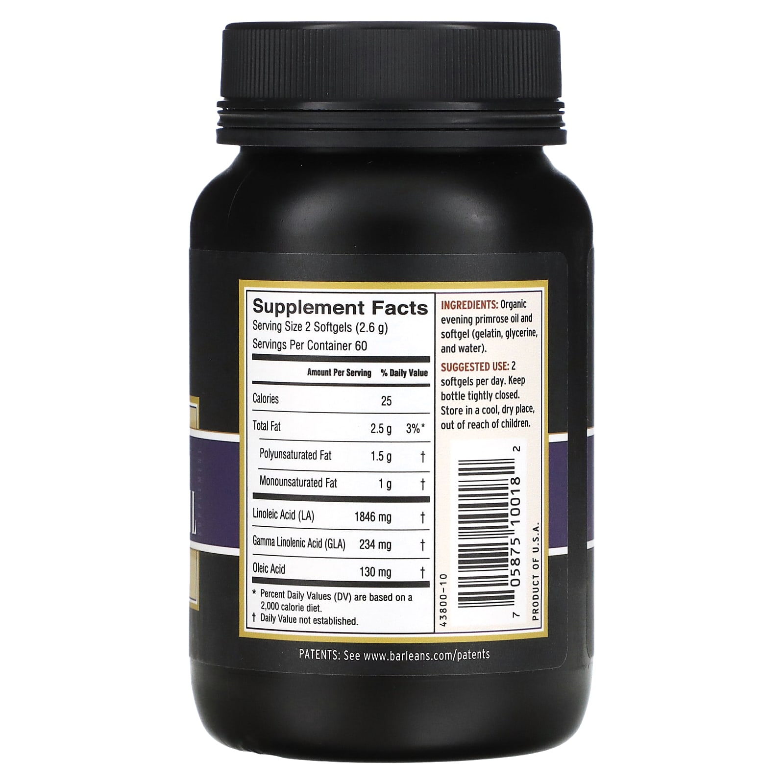 *Some information on the Barlean's, Evening Primrose Oil, 120 Softgelslabel may be missing, or it may have been written incorrectly. We work hard to keep the information accurate & up to date. Please let us know if you discover any errors.