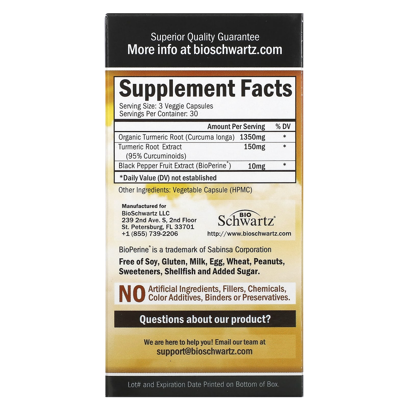 *Some information on the BioSchwartz, Turmeric Curcumin with Bioperine, 1,500 mg, 90 Capsules (500 mg per Capsule)label may be missing, or it may have been written incorrectly. We work hard to keep the information accurate & up to date. Please let us know if you discover any errors.