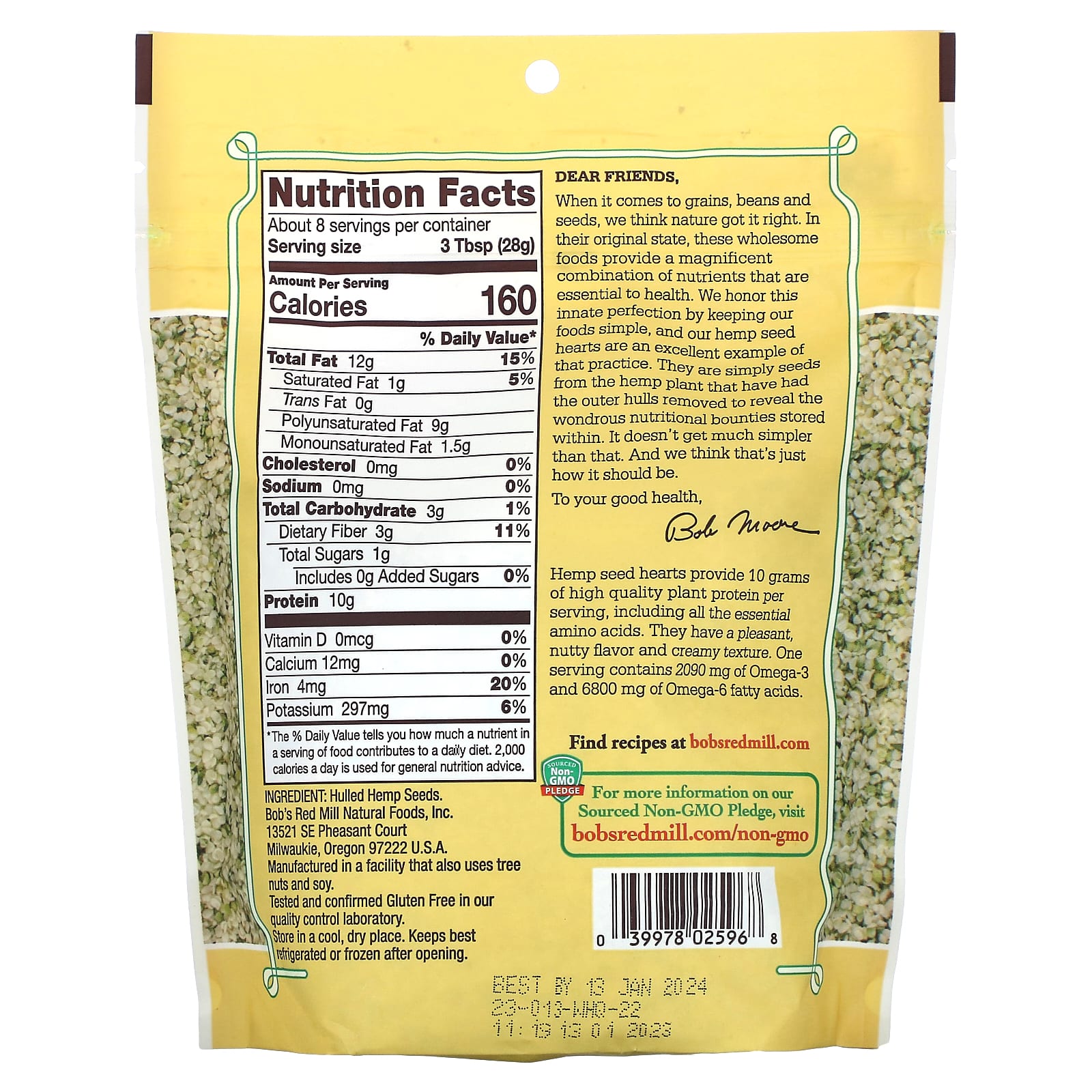 *Some information on the Bob's Red Mill, Hulled Hemp Seed Hearts, 8 oz (227 g)label may be missing, or it may have been written incorrectly. We work hard to keep the information accurate & up to date. Please let us know if you discover any errors.