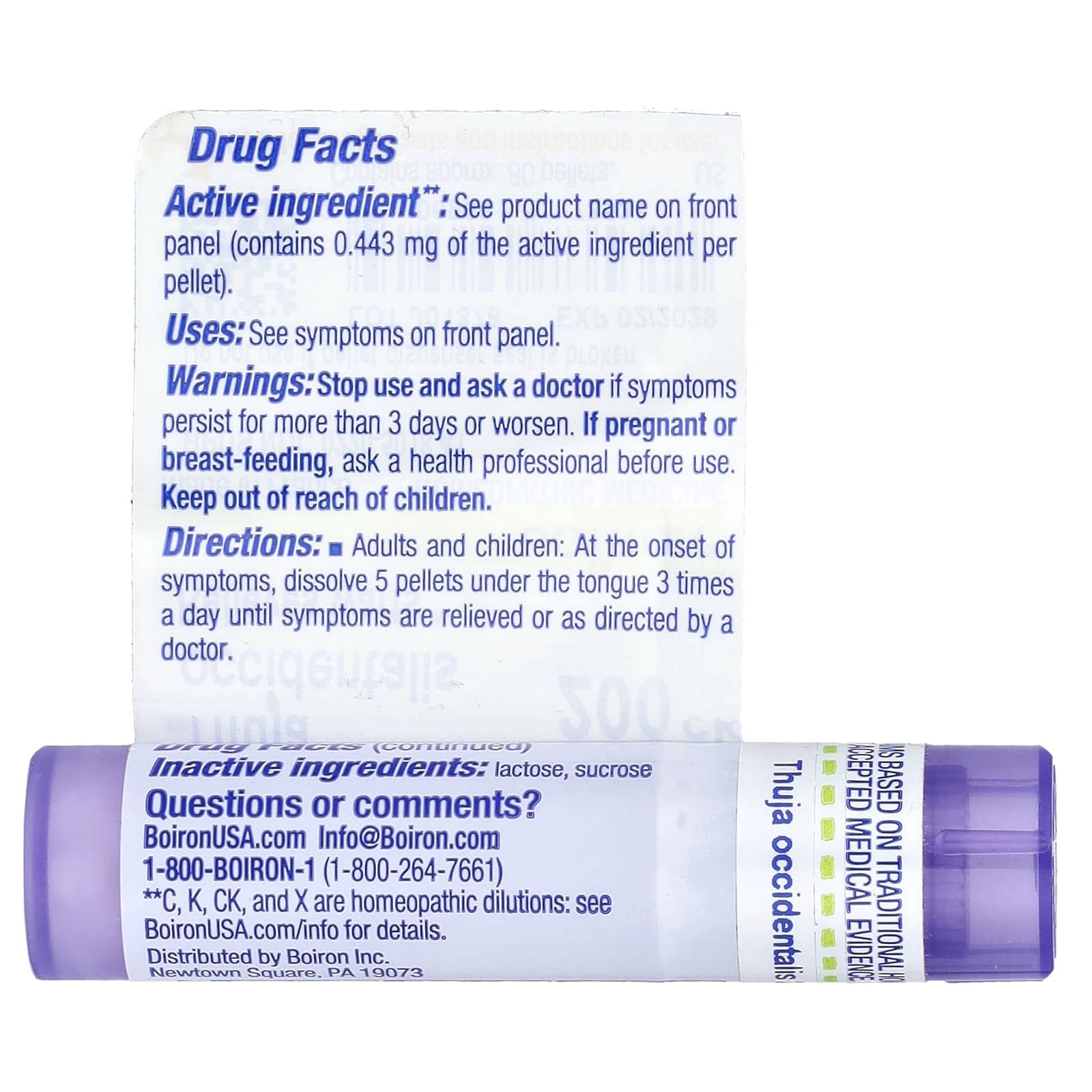 *Some information on the Boiron, Thuja Occidentalis, 200CK, Wart Relief, Approx 80 Pelletslabel may be missing, or it may have been written incorrectly. We work hard to keep the information accurate & up to date. Please let us know if you discover any errors.