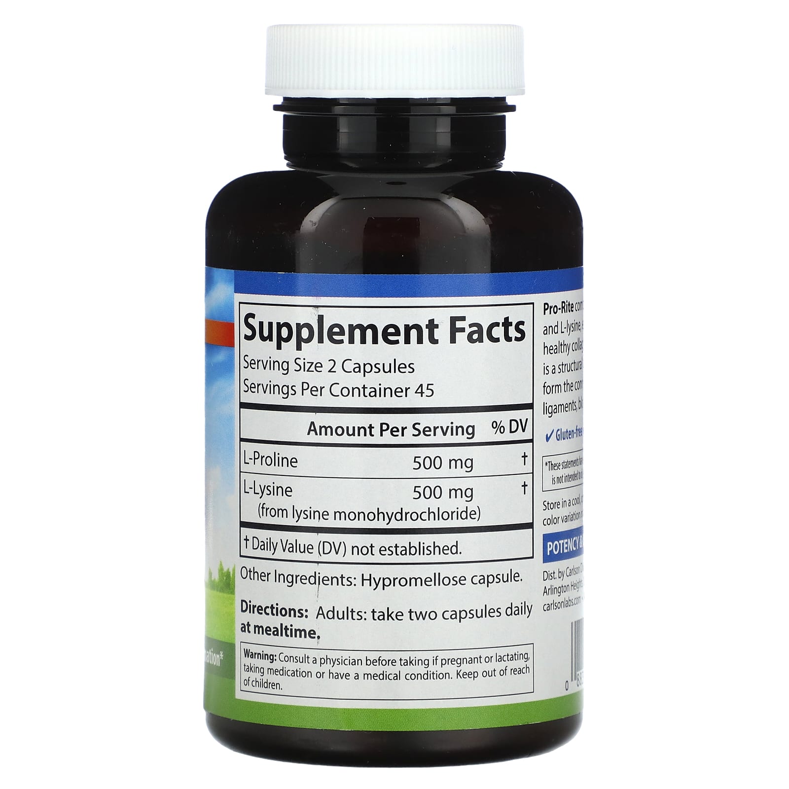 *Some information on the Carlson, Pro-Rite, 90 Vegetarian Capsuleslabel may be missing, or it may have been written incorrectly. We work hard to keep the information accurate & up to date. Please let us know if you discover any errors.