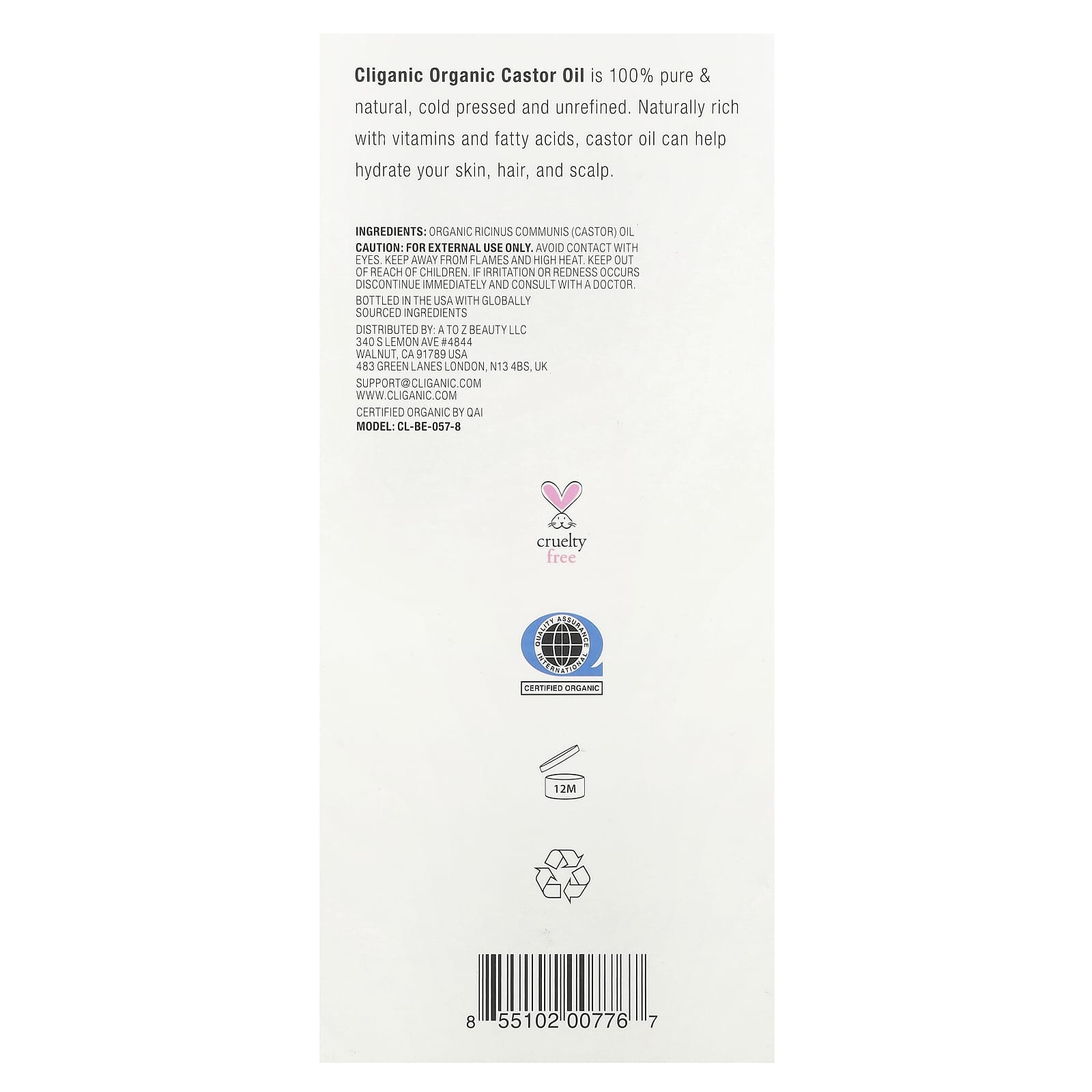 *Some information on the Cliganic, 100% Pure & Natural, Organic Castor Oil, 8 fl oz (240 ml)label may be missing, or it may have been written incorrectly. We work hard to keep the information accurate & up to date. Please let us know if you discover any errors.