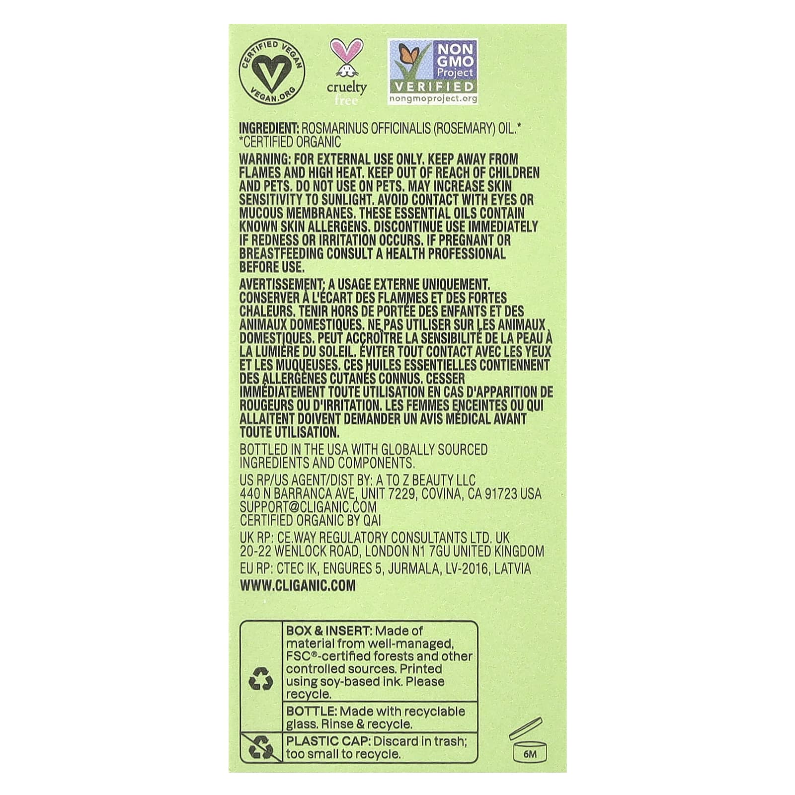*Some information on the Cliganic, Drop of Exhilaration™, Organic Rosemary Essential Oil, 0.34 fl oz (10 ml)label may be missing, or it may have been written incorrectly. We work hard to keep the information accurate & up to date. Please let us know if you discover any errors.