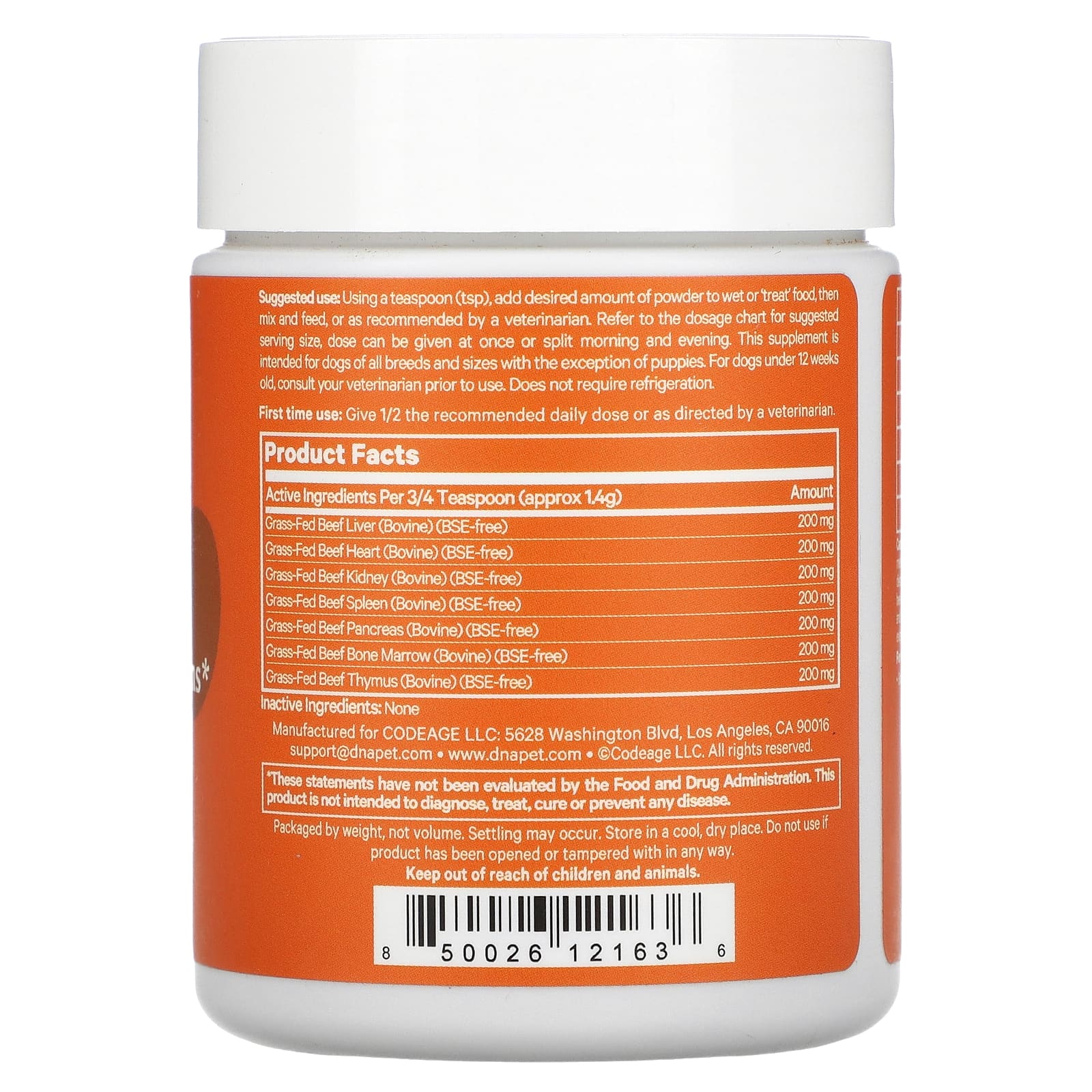 *Some information on the Codeage, DNA Pet, Happy Healthy Organs, Multi Organs & Glands Formula, For Dogs, 3 oz (85 g)label may be missing, or it may have been written incorrectly. We work hard to keep the information accurate & up to date. Please let us know if you discover any errors.