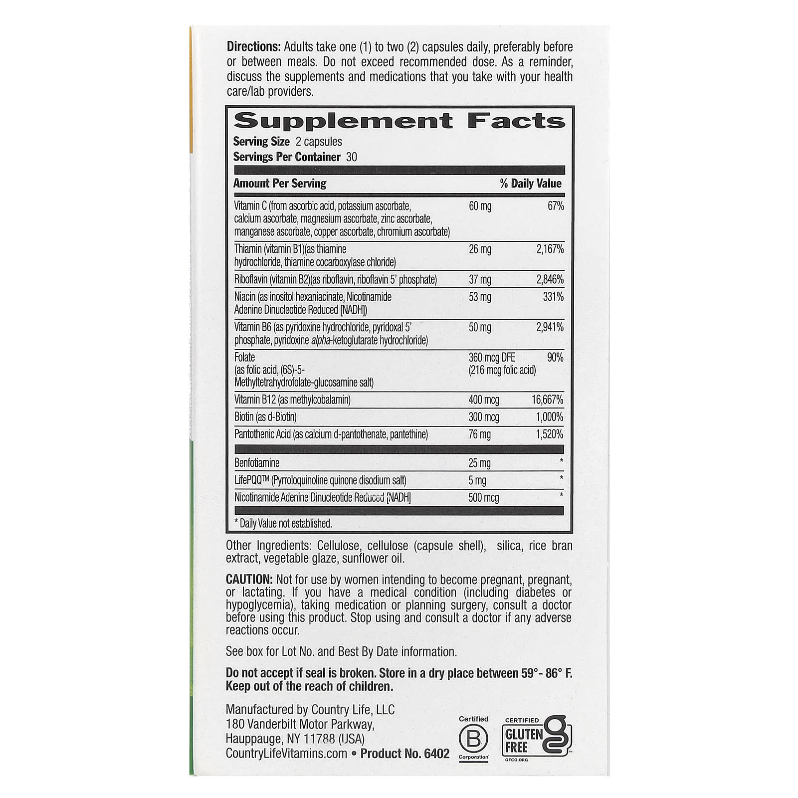 *Some information on the Country Life, Coenzyme B-Complex, Advanced, 60 Vegan Capsuleslabel may be missing, or it may have been written incorrectly. We work hard to keep the information accurate & up to date. Please let us know if you discover any errors.