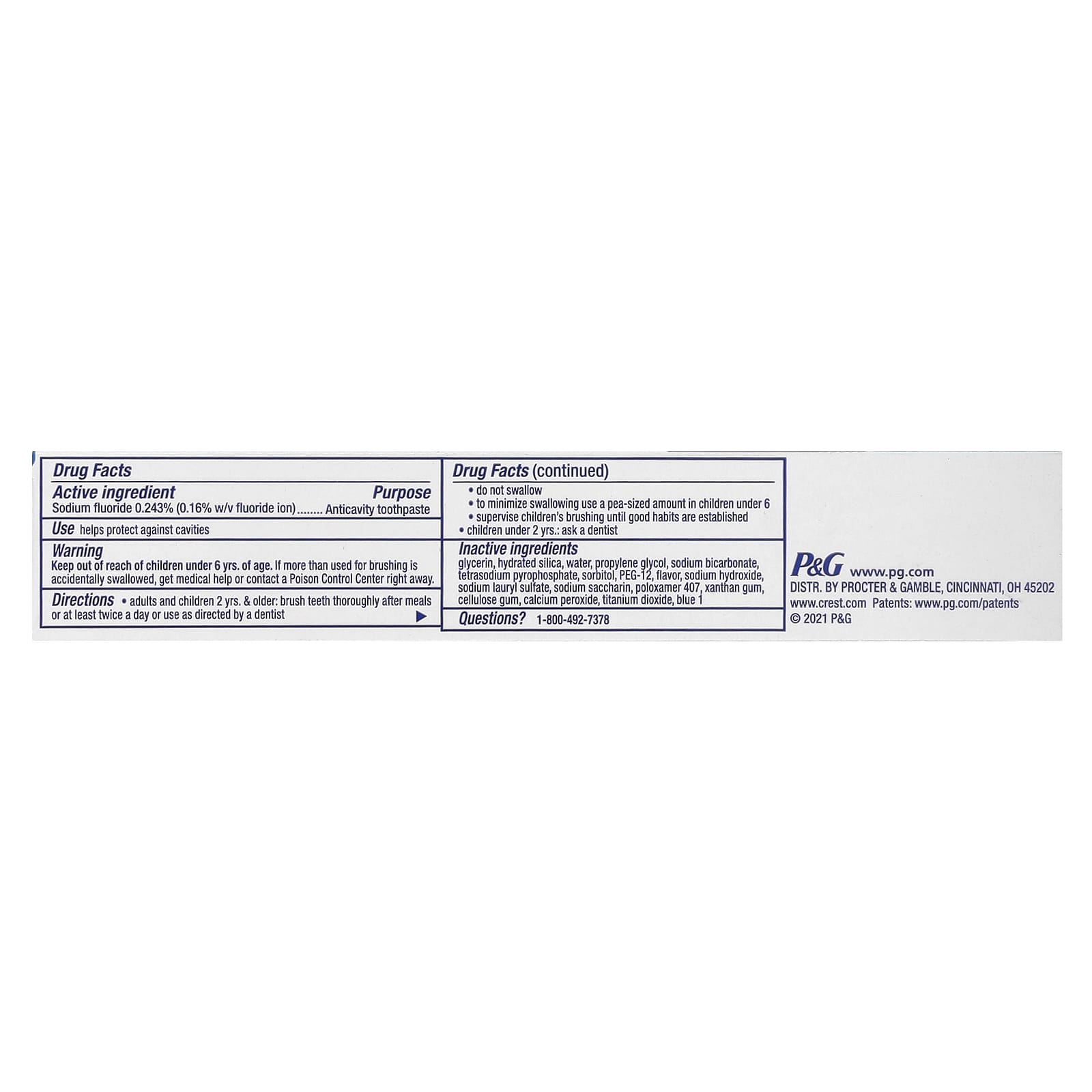 *Some information on the Crest, Baking Soda & Peroxide Whitening Fluoride Toothpaste, Fresh Mint, 2.4 oz (68 g)label may be missing, or it may have been written incorrectly. We work hard to keep the information accurate & up to date. Please let us know if you discover any errors.