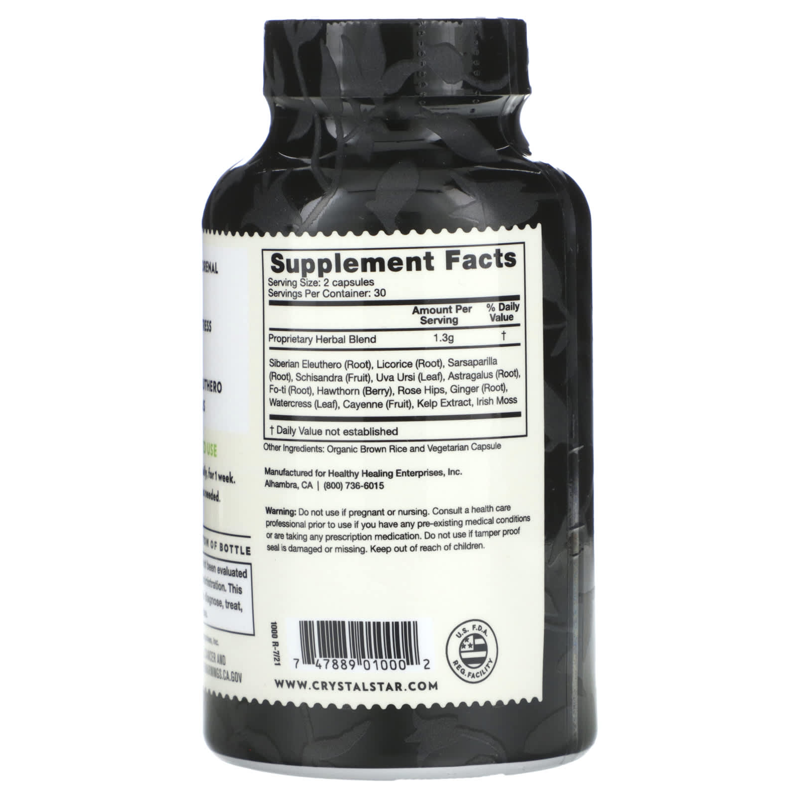 *Some information on the Crystal Star, Adrenal Support, 60 Vegetarian Capsuleslabel may be missing, or it may have been written incorrectly. We work hard to keep the information accurate & up to date. Please let us know if you discover any errors.