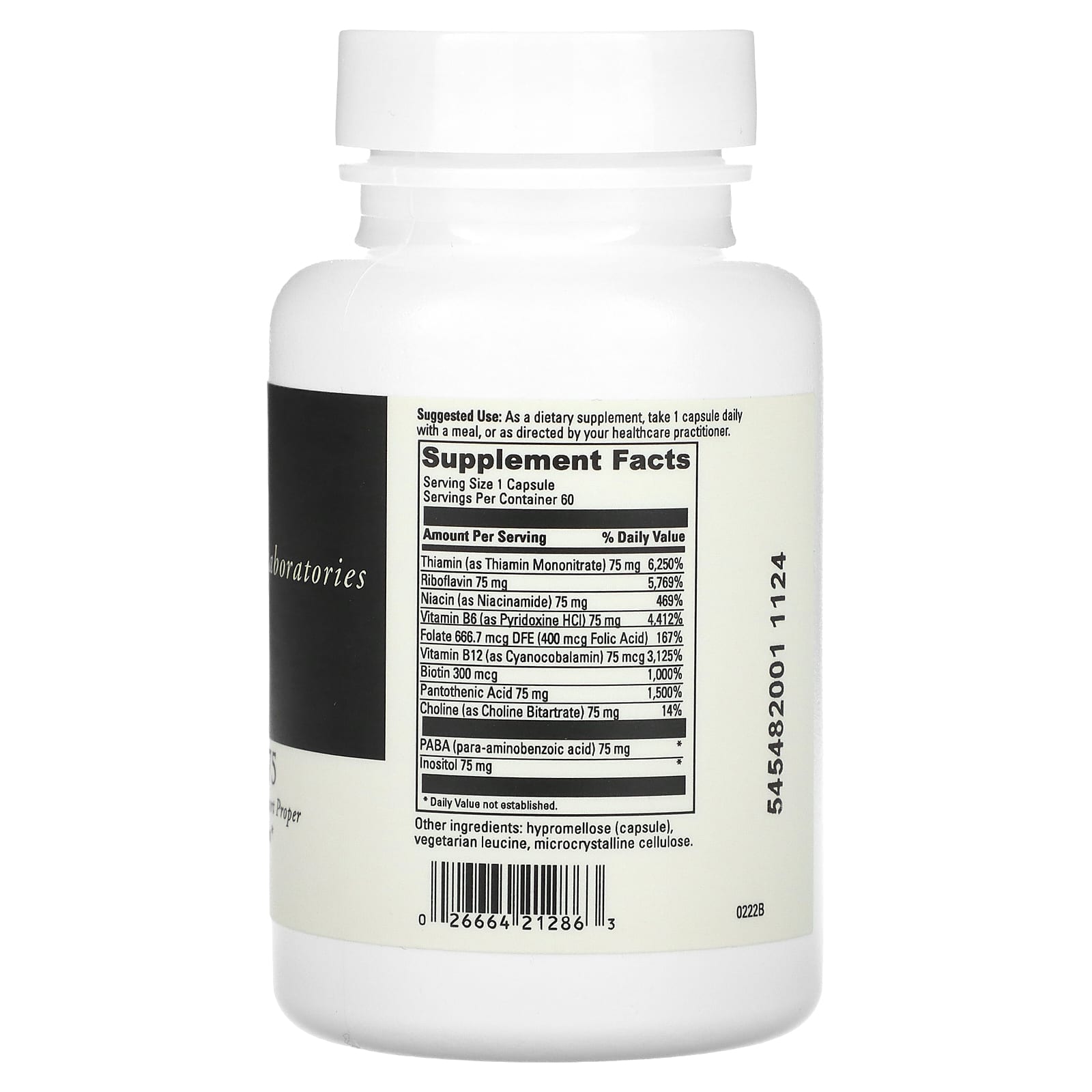 *Some information on the DaVinci Laboratories of Vermont, B Complex-75, 60 Capsuleslabel may be missing, or it may have been written incorrectly. We work hard to keep the information accurate & up to date. Please let us know if you discover any errors.
