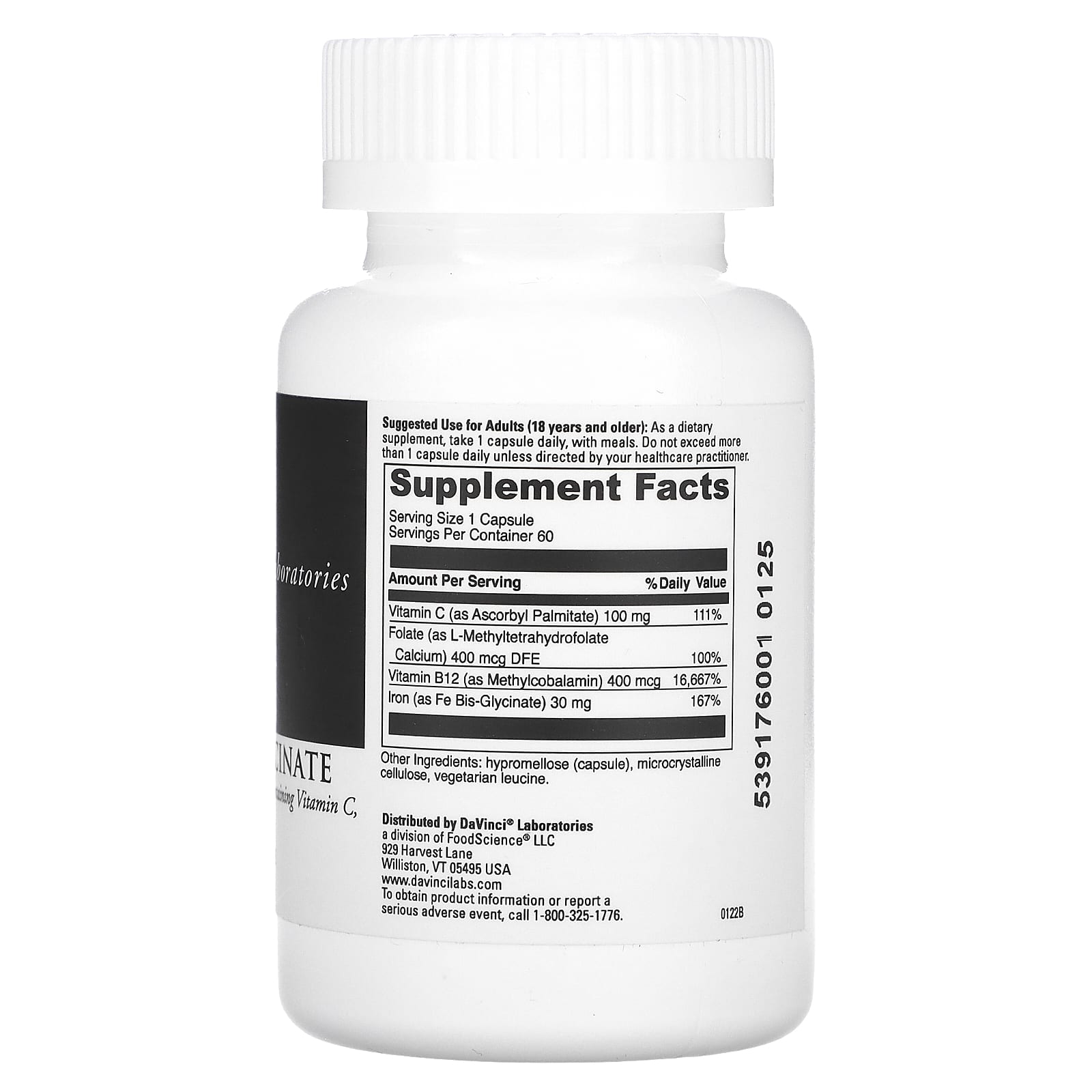 *Some information on the DaVinci Laboratories of Vermont, Iron Bis-Glycinate, 60 Capsuleslabel may be missing, or it may have been written incorrectly. We work hard to keep the information accurate & up to date. Please let us know if you discover any errors.