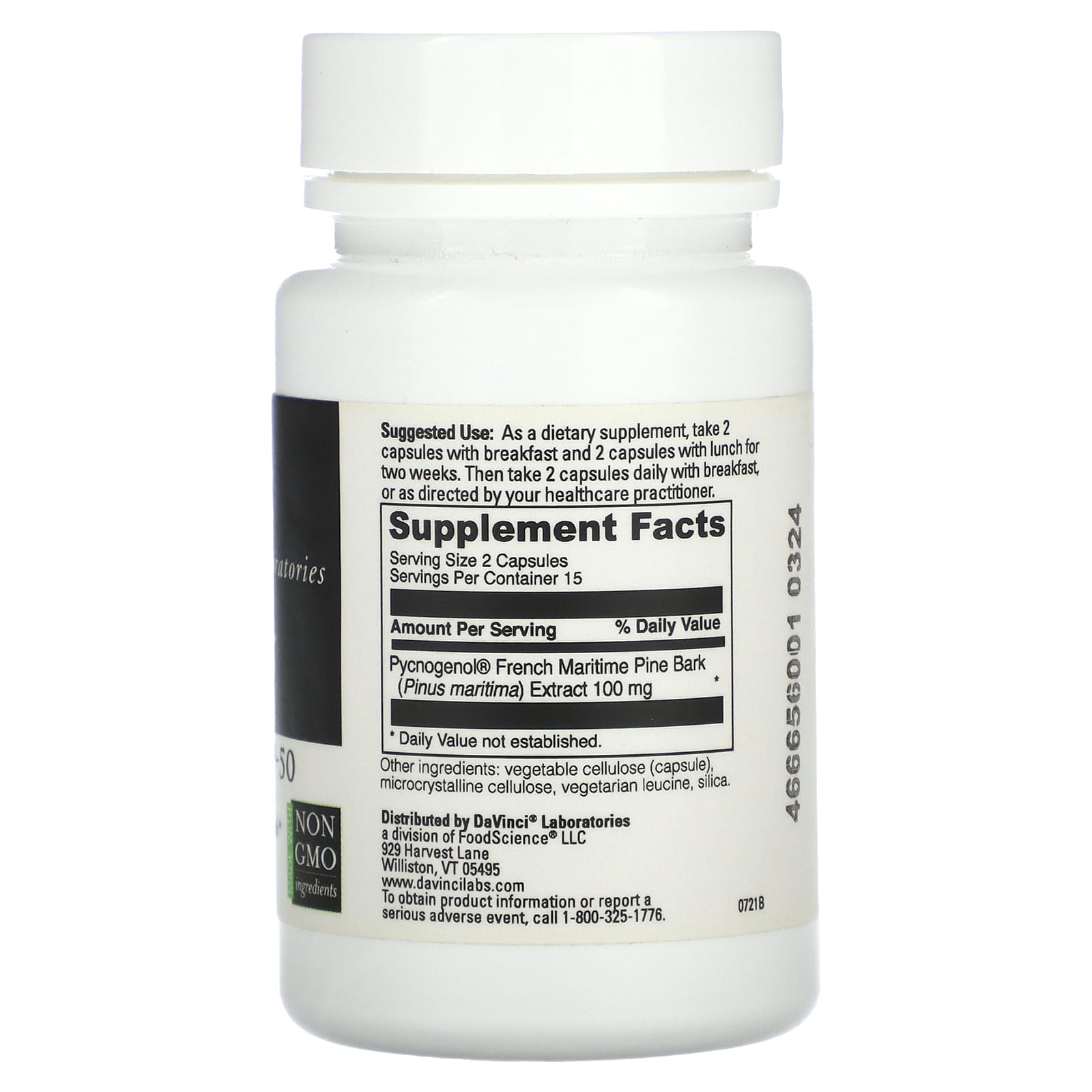 *Some information on the DaVinci Laboratories of Vermont, Pycnogenol-50, 50 mg, 30 Capsuleslabel may be missing, or it may have been written incorrectly. We work hard to keep the information accurate & up to date. Please let us know if you discover any errors.
