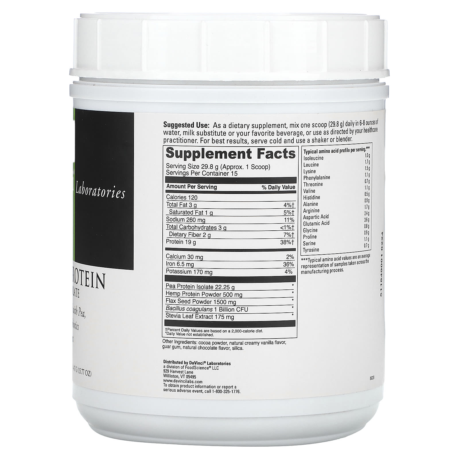 *Some information on the DaVinci Laboratories of Vermont, Vegan Protein, Creamy Chocolate, 15.77 oz (447 g)label may be missing, or it may have been written incorrectly. We work hard to keep the information accurate & up to date. Please let us know if you discover any errors.
