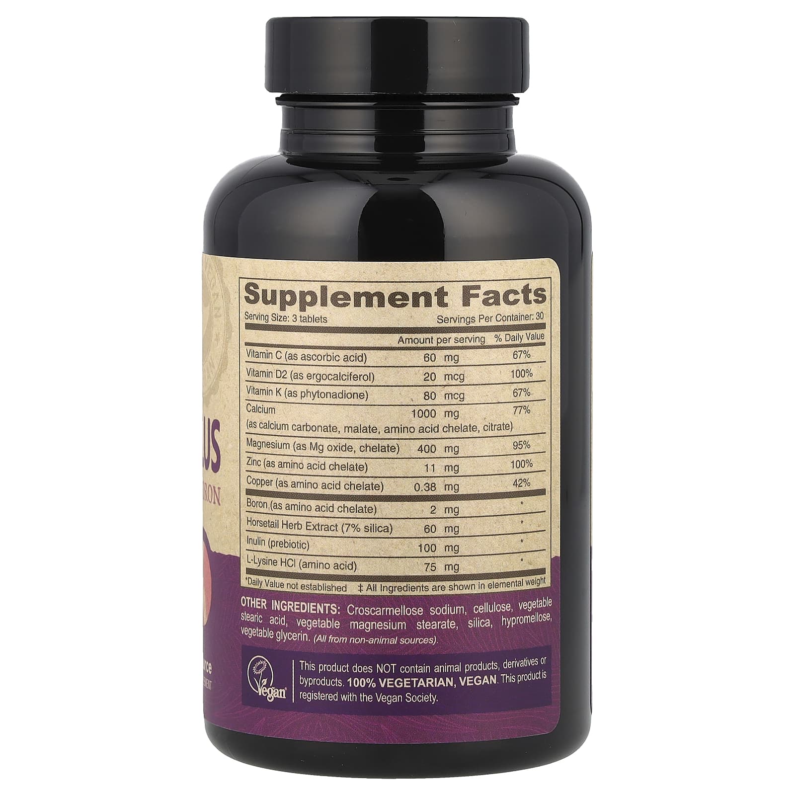 | Boron | 2 mg (as amino acid chelate) | missing substance or information* | missing substance or information* | missing substance or information* |