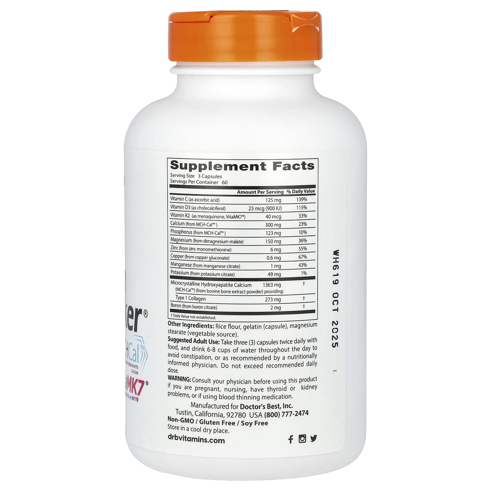 *Some information on the Doctor's Best, Calcium Bone Maker Complex with MCHCal , 180 Capsuleslabel may be missing, or it may have been written incorrectly. We work hard to keep the information accurate & up to date. Please let us know if you discover any errors.