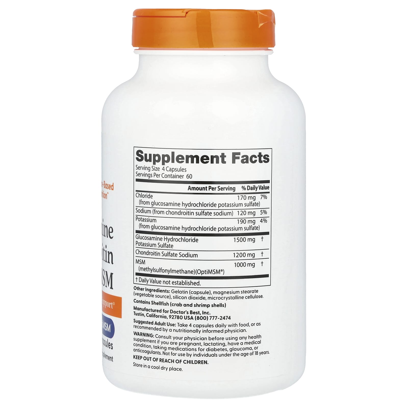 *Some information on the Doctor's Best, Glucosamine Chondroitin MSM with OptiMSM®, 240 Capslabel may be missing, or it may have been written incorrectly. We work hard to keep the information accurate & up to date. Please let us know if you discover any errors.