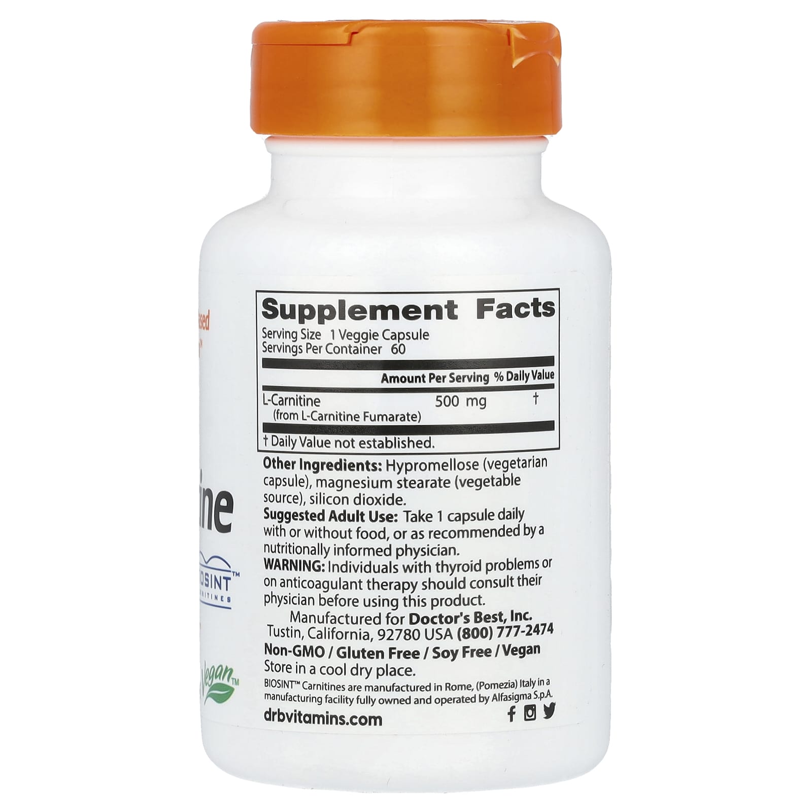*Some information on the Doctor's Best, L-Carnitine Fumarate with Biosint Carnitine, 60 Veggie Capslabel may be missing, or it may have been written incorrectly. We work hard to keep the information accurate & up to date. Please let us know if you discover any errors.