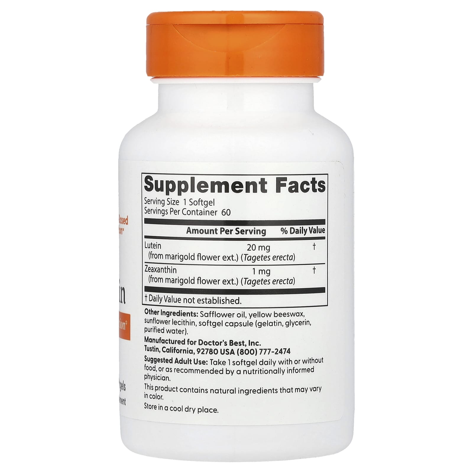 *Some information on the Doctor's Best, Lutein , 20 mg, 60 Softgelslabel may be missing, or it may have been written incorrectly. We work hard to keep the information accurate & up to date. Please let us know if you discover any errors.