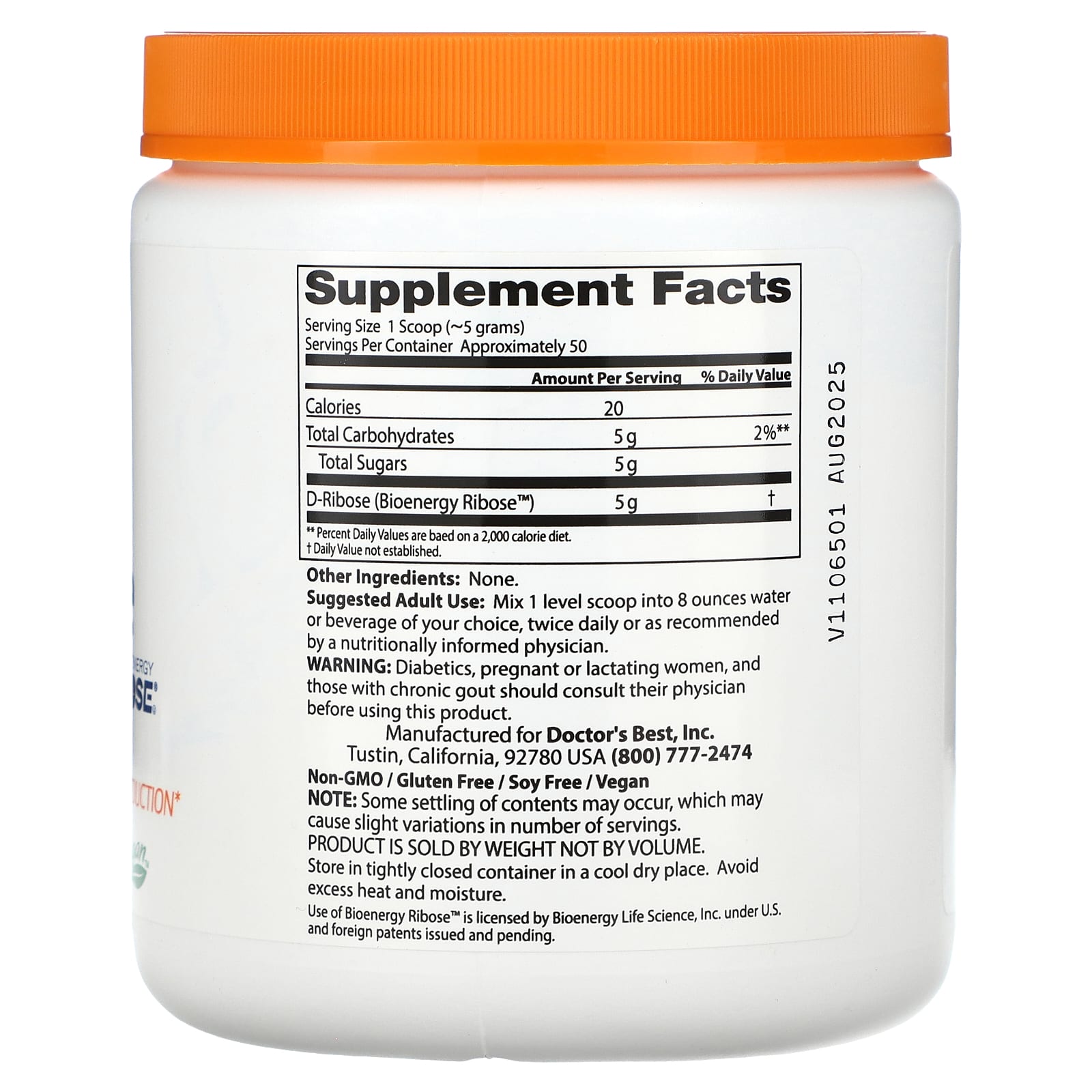 *Some information on the Doctor's Best, Pure D-Ribose Powder, 8.8 oz (250 g)label may be missing, or it may have been written incorrectly. We work hard to keep the information accurate & up to date. Please let us know if you discover any errors.