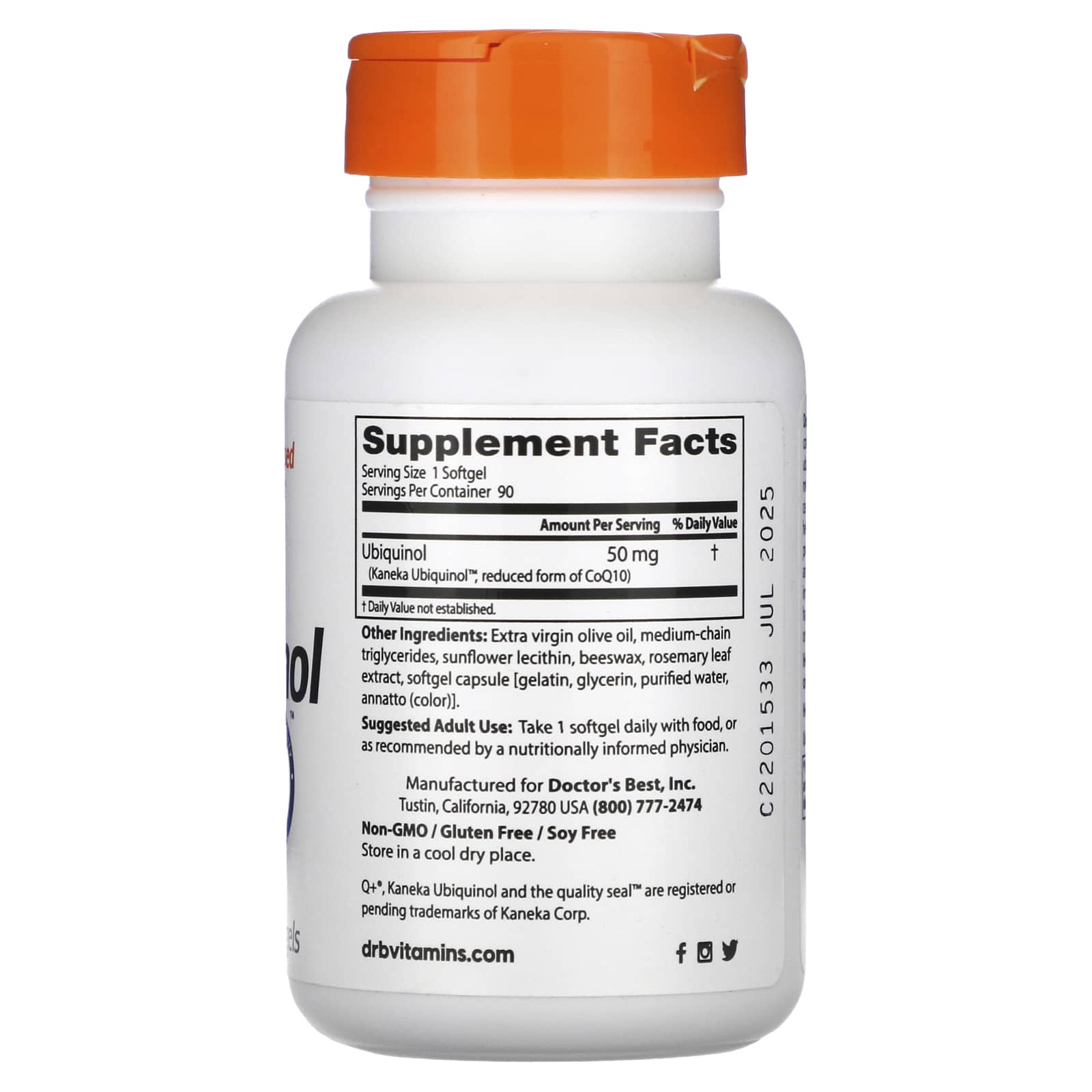 *Some information on the Doctor's Best, Ubiquinol with Kaneka, 50 mg, 90 Softgelslabel may be missing, or it may have been written incorrectly. We work hard to keep the information accurate & up to date. Please let us know if you discover any errors.