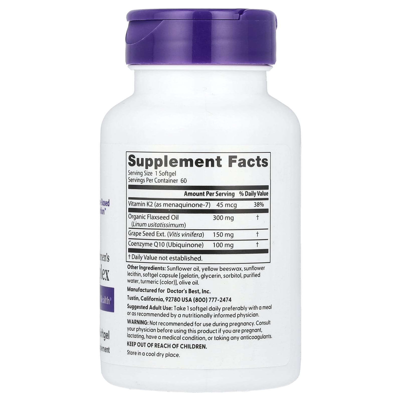 *Some information on the Doctor's Best, Women's Heart Complex, 60 Softgelslabel may be missing, or it may have been written incorrectly. We work hard to keep the information accurate & up to date. Please let us know if you discover any errors.