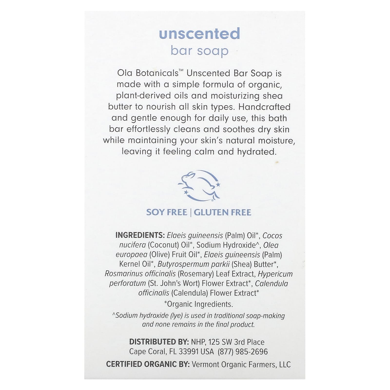 *Some information on the Dr. Mercola, Ola Botanicals, Bar Soap, Unscented, 3 oz (85 g)label may be missing, or it may have been written incorrectly. We work hard to keep the information accurate & up to date. Please let us know if you discover any errors.