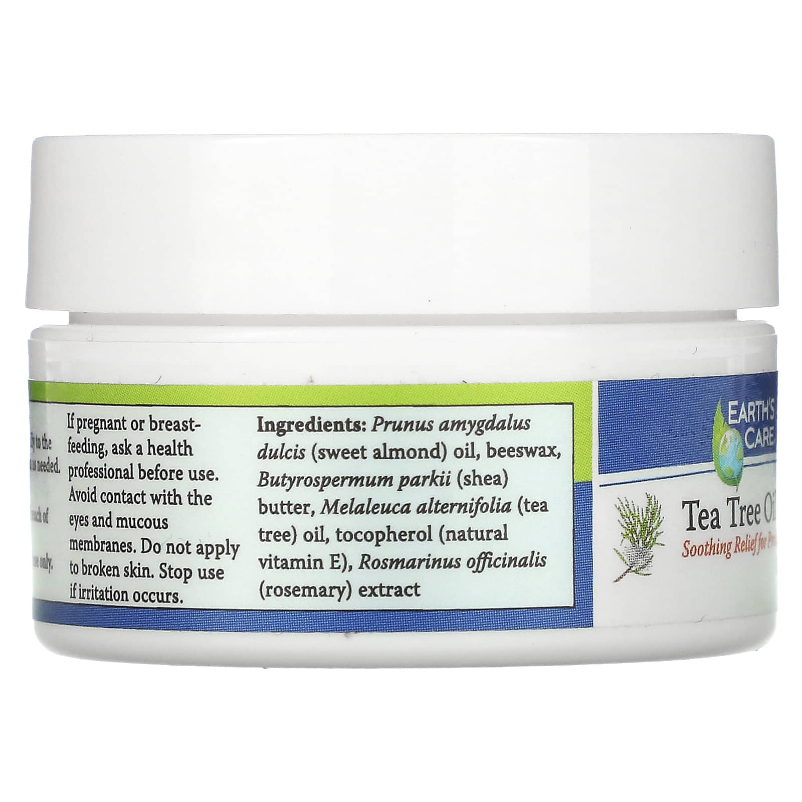 *Some information on the Earth's Care, Tea Tree Oil Balm, 0.21 oz (6 g)label may be missing, or it may have been written incorrectly. We work hard to keep the information accurate & up to date. Please let us know if you discover any errors.