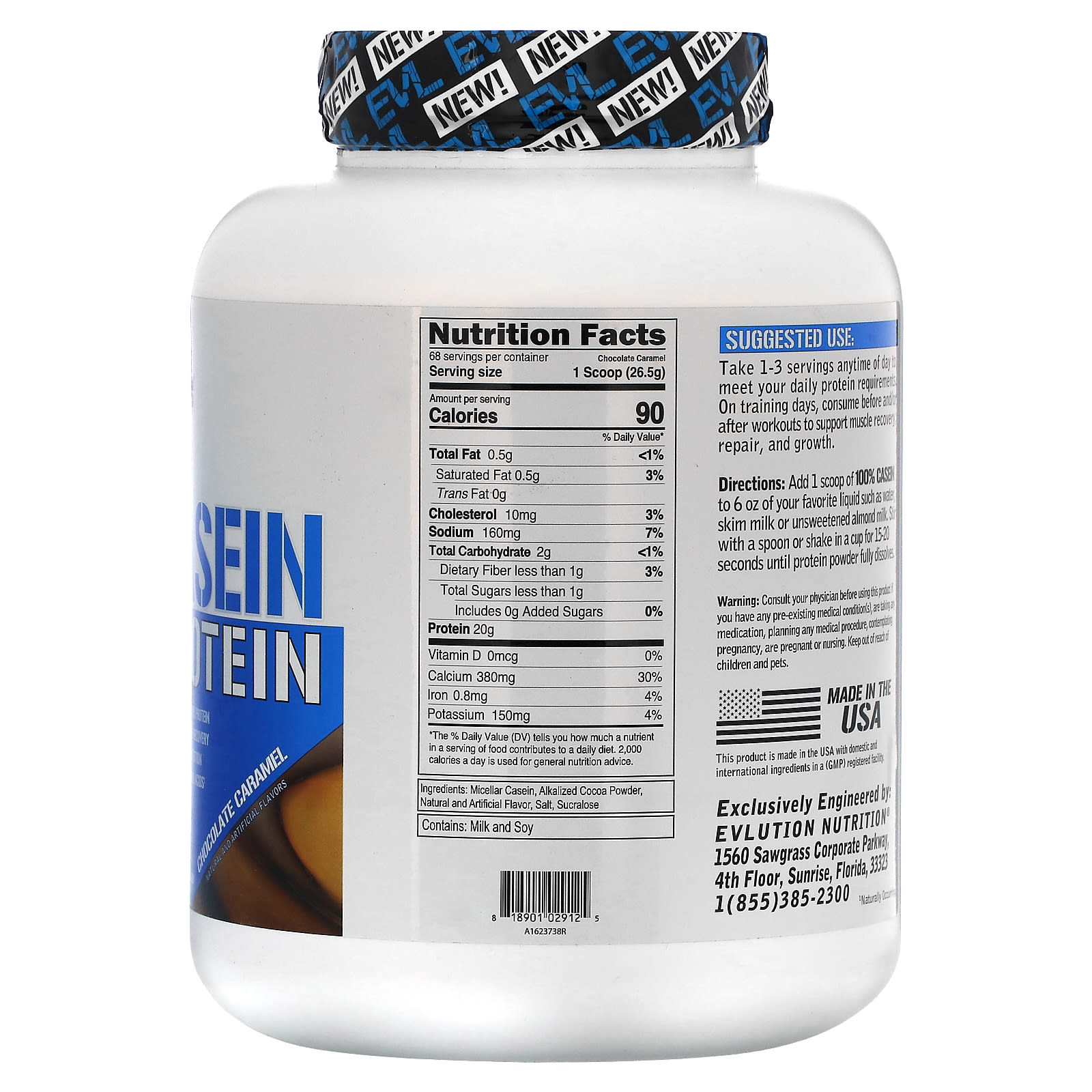 *Some information on the EVLution Nutrition, 100% Casein Protein, Chocolate Caramel, 4 lb (1.814 kg)label may be missing, or it may have been written incorrectly. We work hard to keep the information accurate & up to date. Please let us know if you discover any errors.