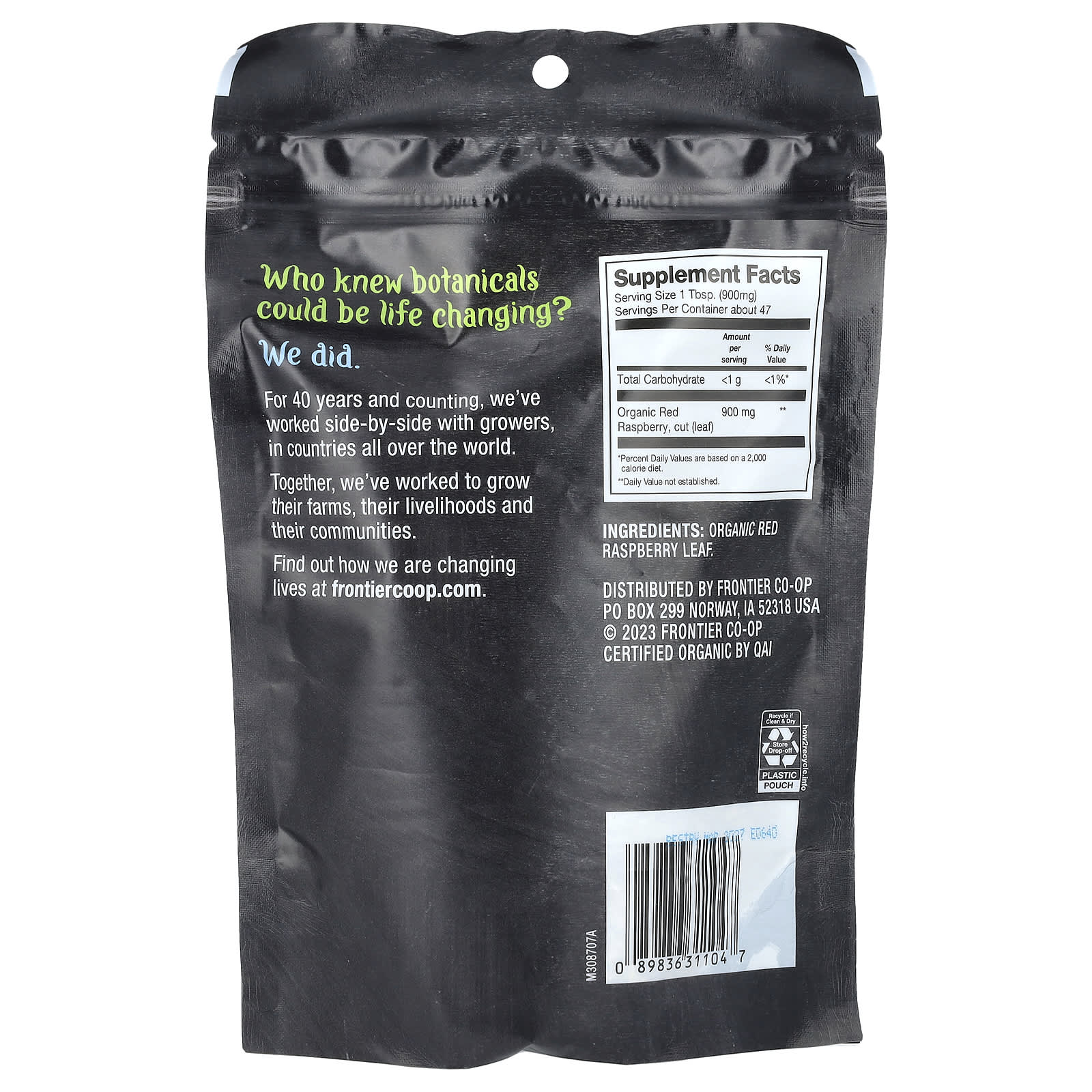 *Some information on the Frontier Co-op, Organic Red Raspberry Leaf, 1.48 oz (42 g)label may be missing, or it may have been written incorrectly. We work hard to keep the information accurate & up to date. Please let us know if you discover any errors.