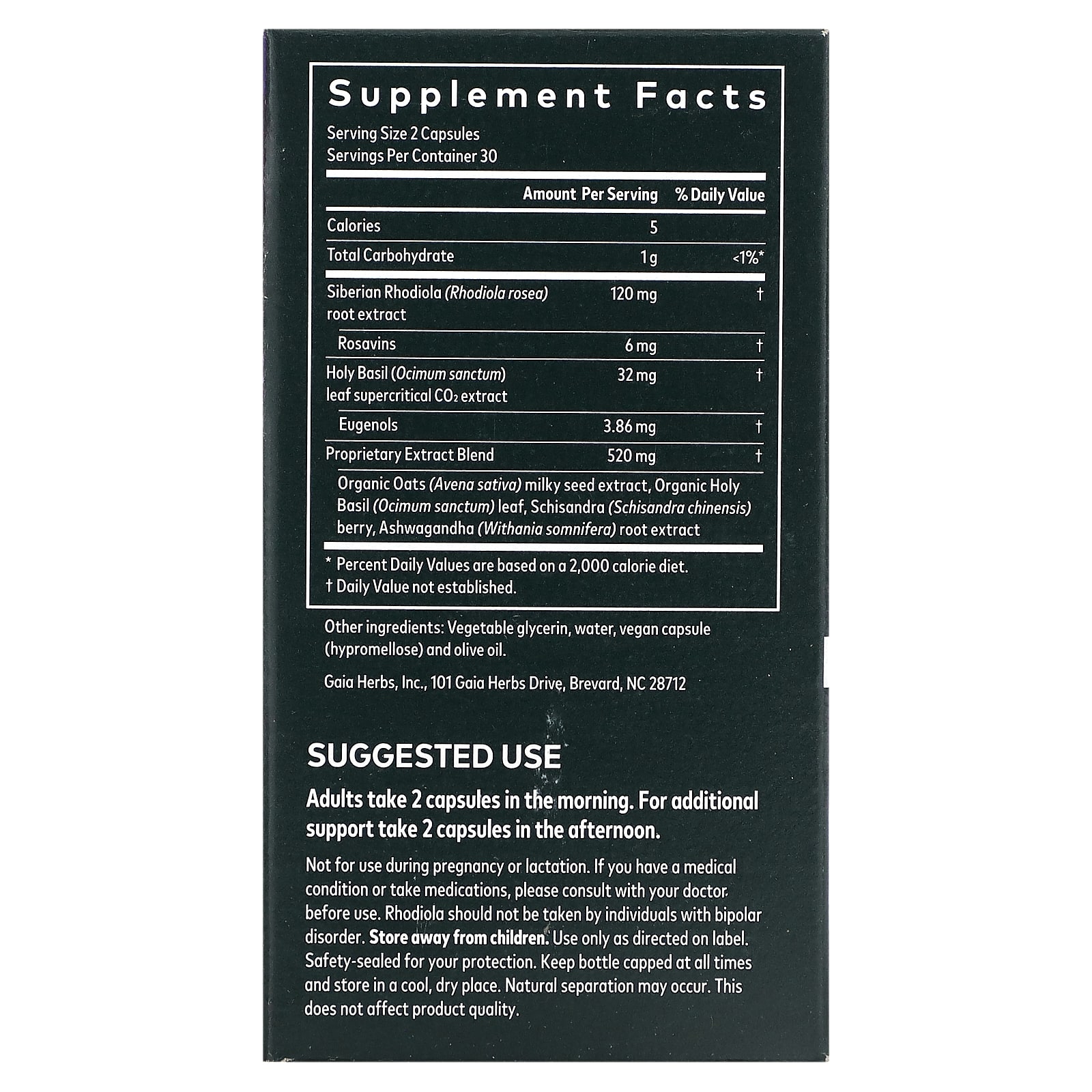 *Some information on the Gaia Herbs, Adrenal Health, Daily Support, 60 Vegan Liquid Phyto-Capslabel may be missing, or it may have been written incorrectly. We work hard to keep the information accurate & up to date. Please let us know if you discover any errors.