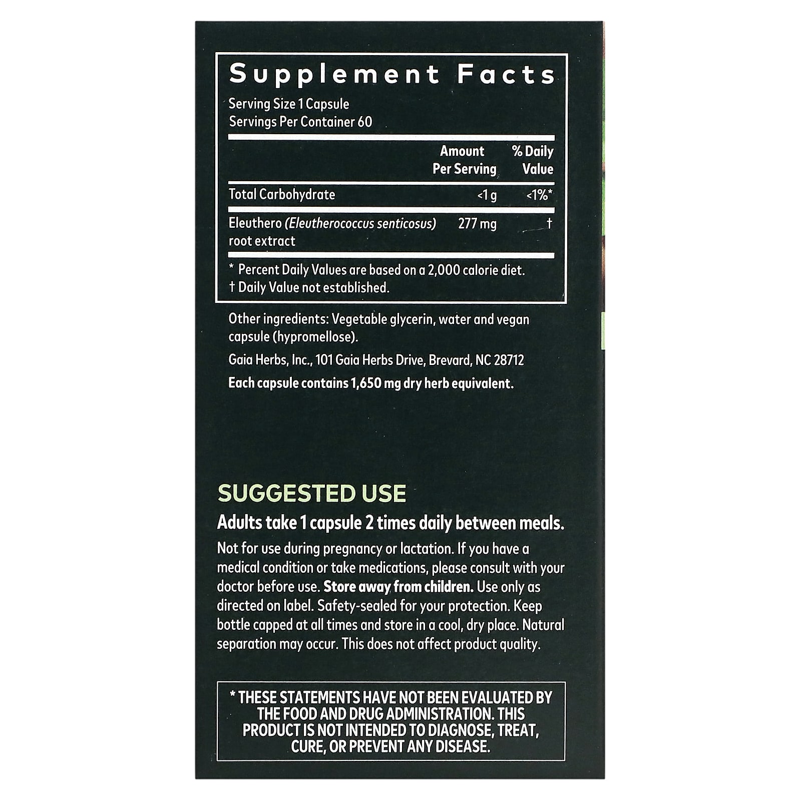 *Some information on the Gaia Herbs, Eleuthero Root, 60 Vegan Liquid Phyto-Capslabel may be missing, or it may have been written incorrectly. We work hard to keep the information accurate & up to date. Please let us know if you discover any errors.