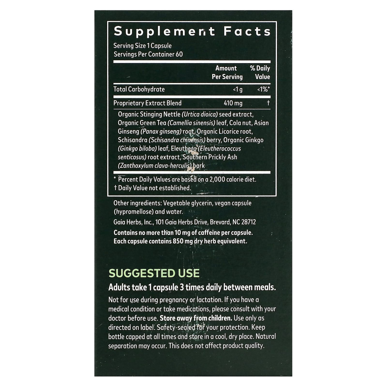 *Some information on the Gaia Herbs, Energy Vitality, 60 Vegan Liquid Phyto-Capslabel may be missing, or it may have been written incorrectly. We work hard to keep the information accurate & up to date. Please let us know if you discover any errors.