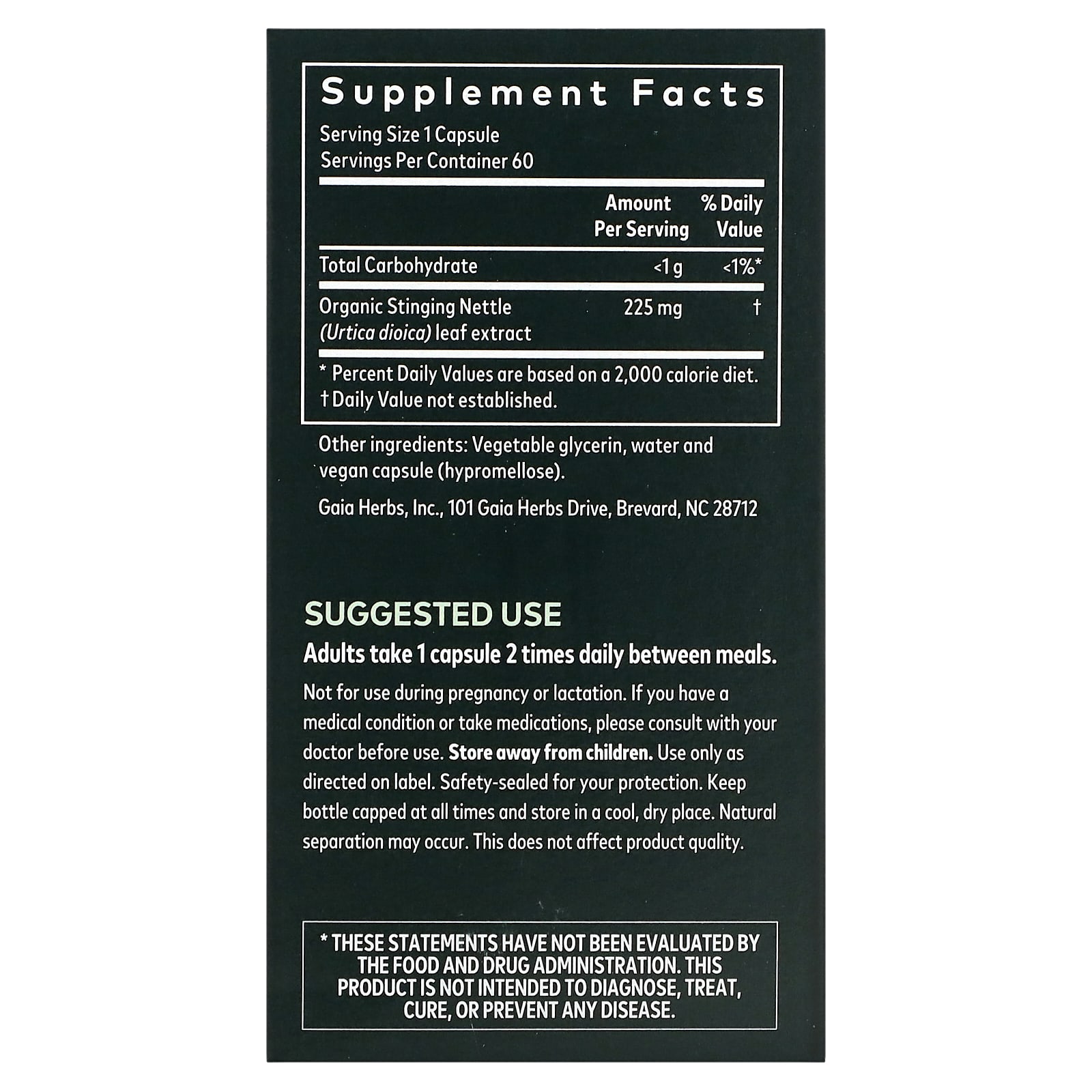 *Some information on the Gaia Herbs, Nettle Leaf, 60 Vegan Liquid Phyto-Capslabel may be missing, or it may have been written incorrectly. We work hard to keep the information accurate & up to date. Please let us know if you discover any errors.