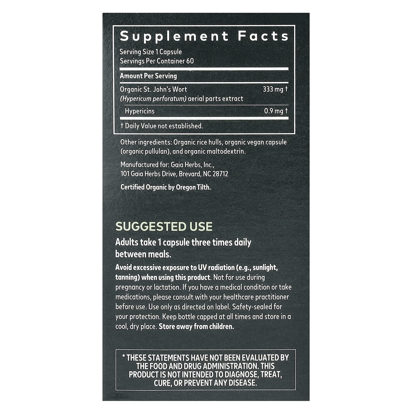 *Some information on the Gaia Herbs, St. John's Wort, 60 Vegan Capsuleslabel may be missing, or it may have been written incorrectly. We work hard to keep the information accurate & up to date. Please let us know if you discover any errors.