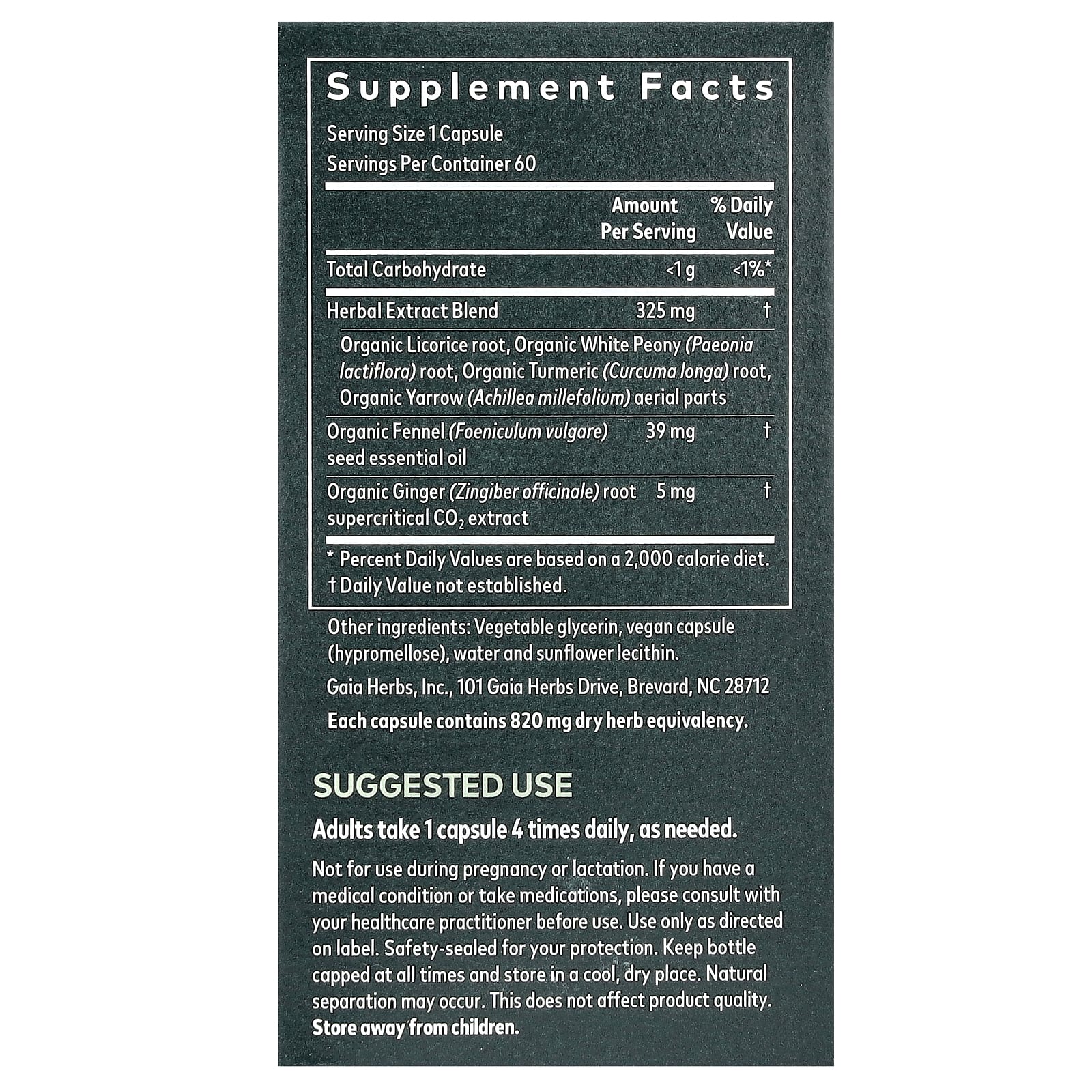 *Some information on the Gaia Herbs, Women, Cramp Relief, Period, 60 Vegan Liquid Phyto-Capslabel may be missing, or it may have been written incorrectly. We work hard to keep the information accurate & up to date. Please let us know if you discover any errors.