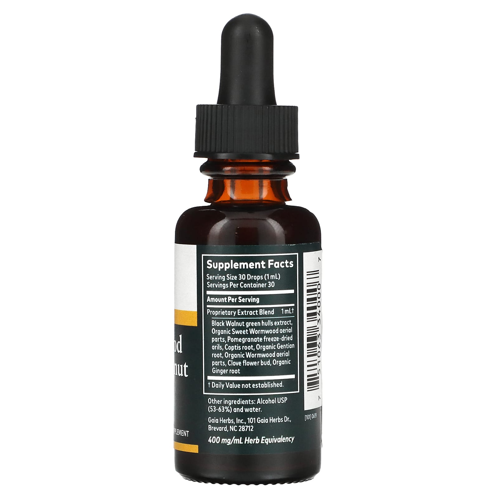 *Some information on the Gaia Herbs, Wormwood Black Walnut Supreme, 1 fl oz (30 ml)label may be missing, or it may have been written incorrectly. We work hard to keep the information accurate & up to date. Please let us know if you discover any errors.