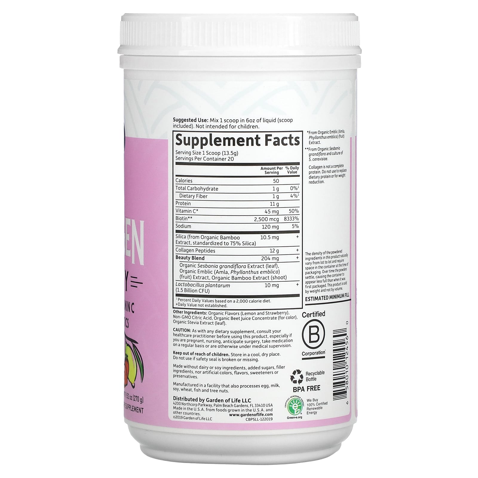 *Some information on the Garden of Life, Grass Fed Collagen Beauty, Strawberry Lemonade, 9.52 oz (270 g)label may be missing, or it may have been written incorrectly. We work hard to keep the information accurate & up to date. Please let us know if you discover any errors.