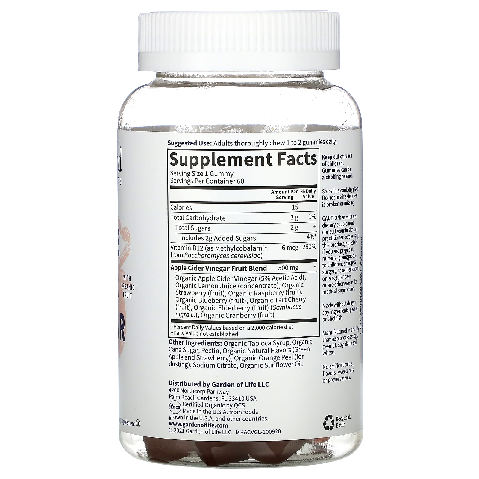 *Some information on the Garden of Life, MyKind Organics, Organic Apple Cider Vinegar Gummies, 60 Vegan Gummieslabel may be missing, or it may have been written incorrectly. We work hard to keep the information accurate & up to date. Please let us know if you discover any errors.