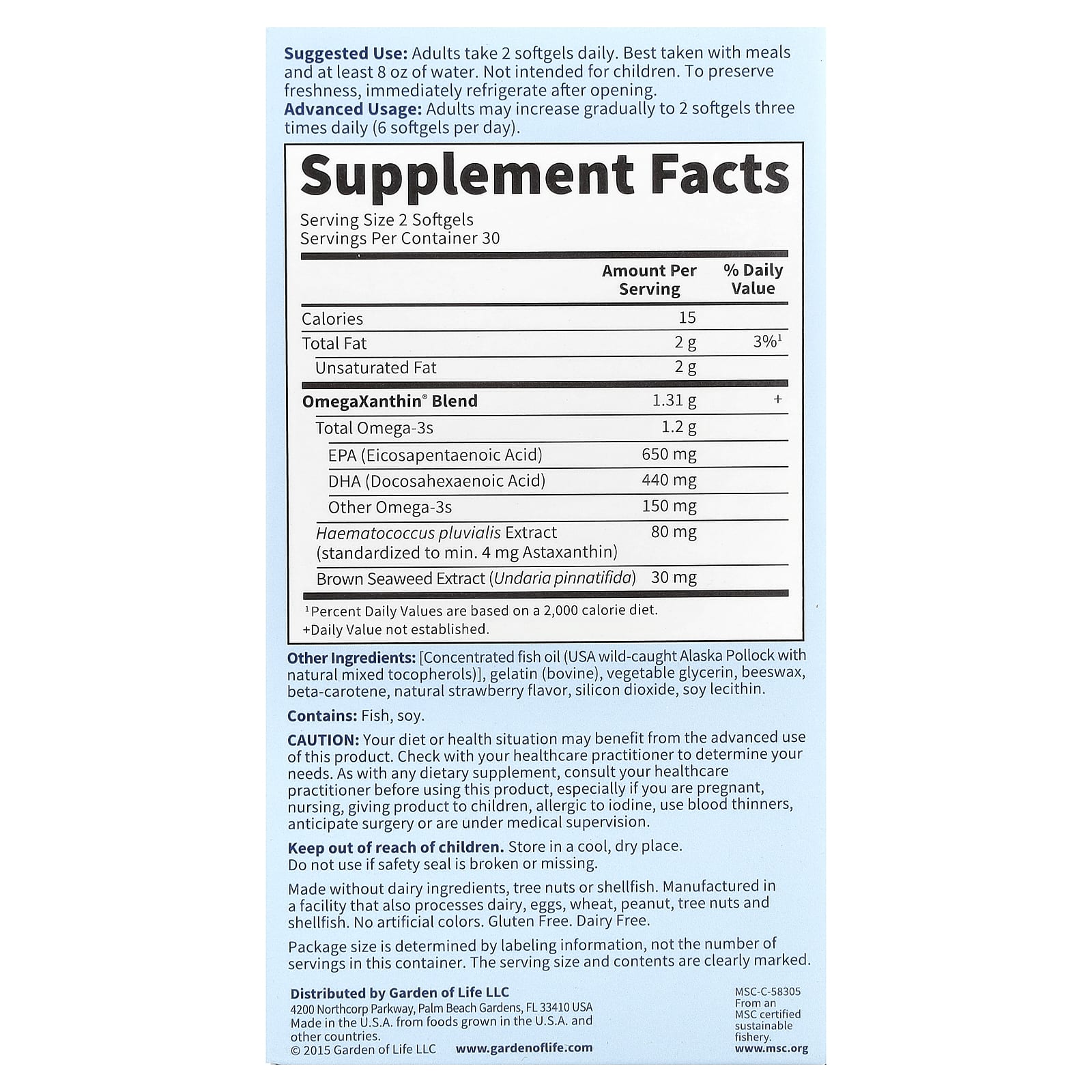 *Some information on the Garden of Life, Oceans 3™, Beyond Omega-3 with OmegaXanthin™, 60 Softgelslabel may be missing, or it may have been written incorrectly. We work hard to keep the information accurate & up to date. Please let us know if you discover any errors.