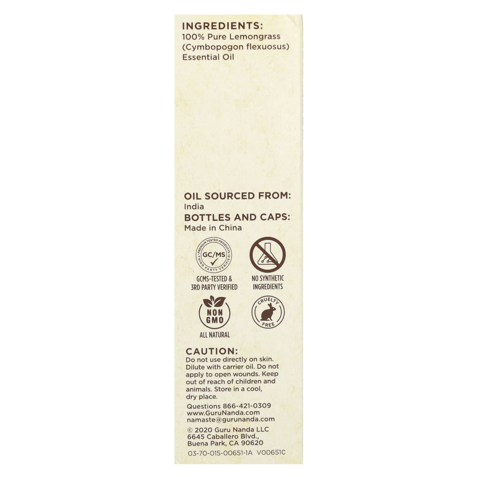 *Some information on the GuruNanda, 100% Pure & Natural Essential Oil, Lemongrass, 0.5 fl oz (15 ml)label may be missing, or it may have been written incorrectly. We work hard to keep the information accurate & up to date. Please let us know if you discover any errors.