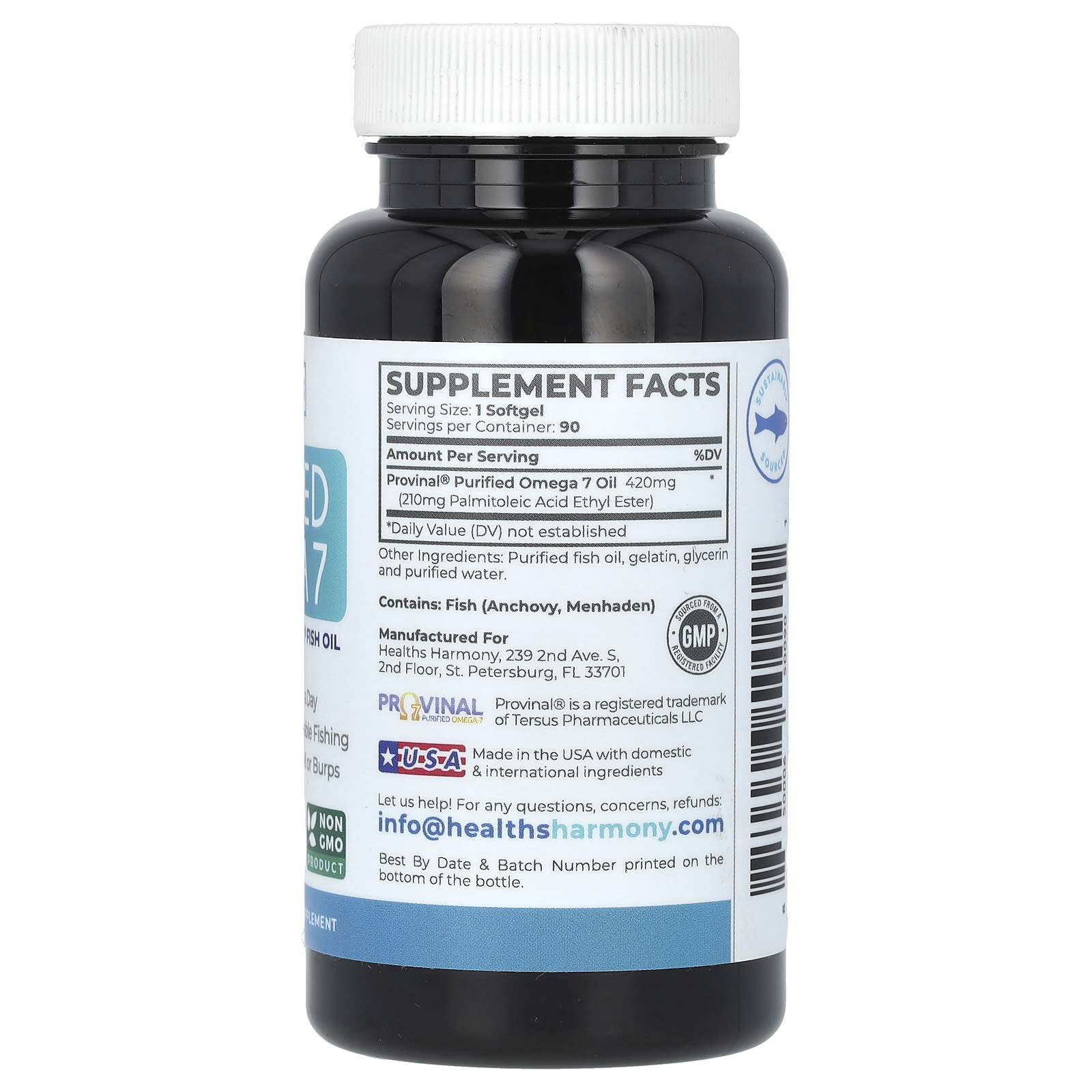 *Some information on the Healths Harmony, Purified Omega 7, 90 Softgelslabel may be missing, or it may have been written incorrectly. We work hard to keep the information accurate & up to date. Please let us know if you discover any errors.
