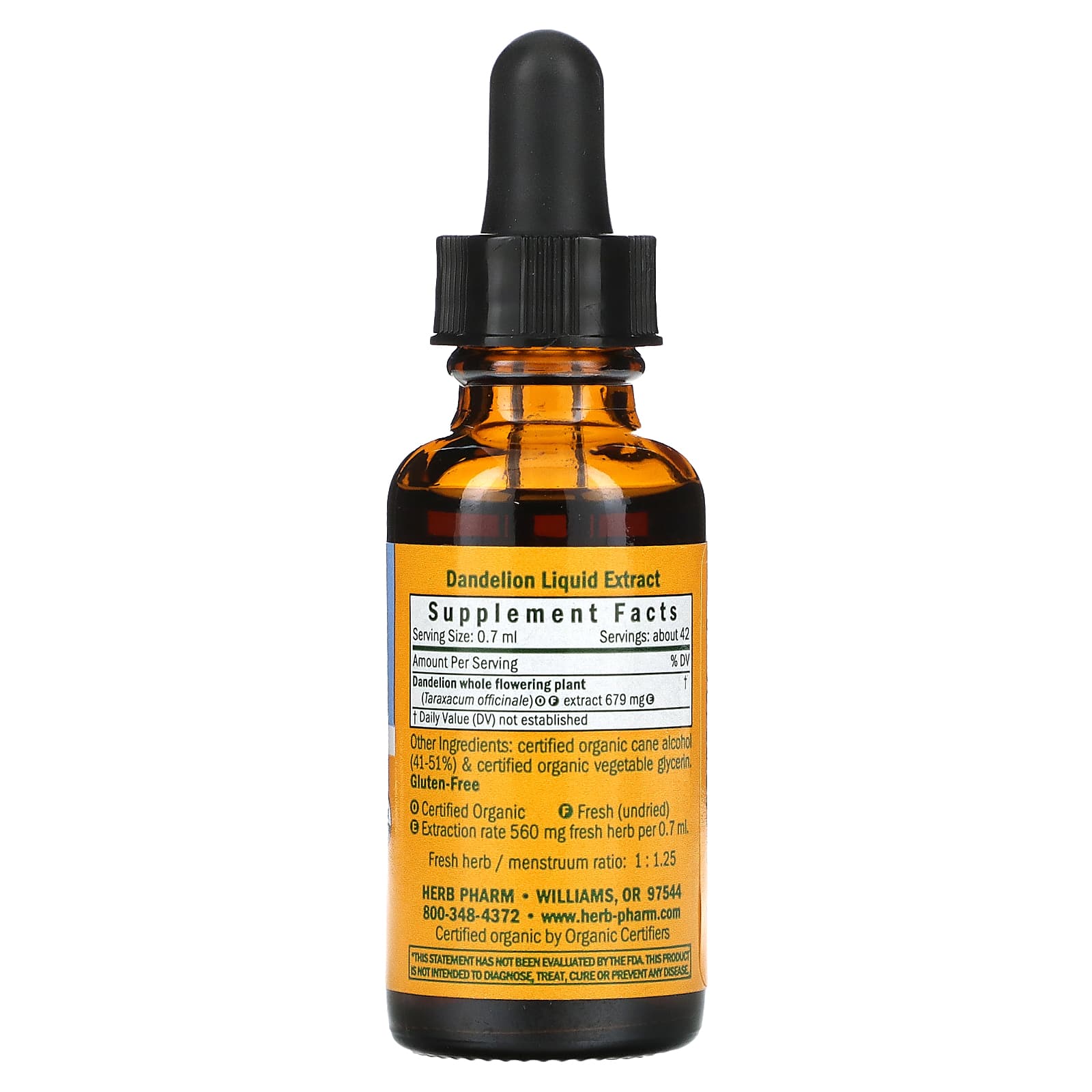*Some information on the Herb Pharm, Dandelion, 1 fl oz (30 ml)label may be missing, or it may have been written incorrectly. We work hard to keep the information accurate & up to date. Please let us know if you discover any errors.