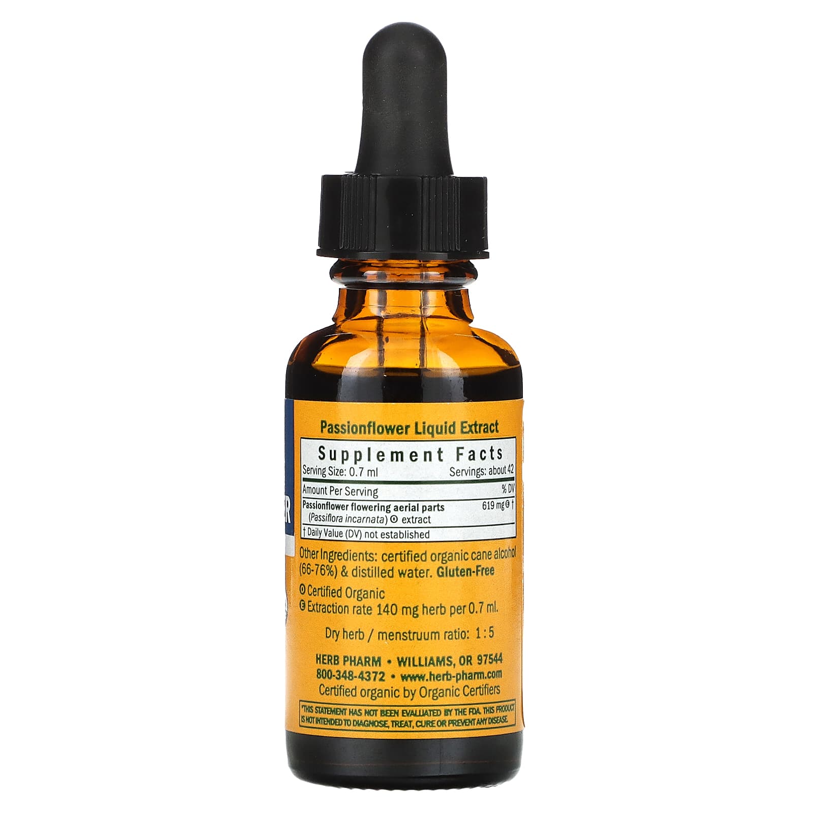 *Some information on the Herb Pharm, Passionflower, 1 fl oz (30 ml)label may be missing, or it may have been written incorrectly. We work hard to keep the information accurate & up to date. Please let us know if you discover any errors.