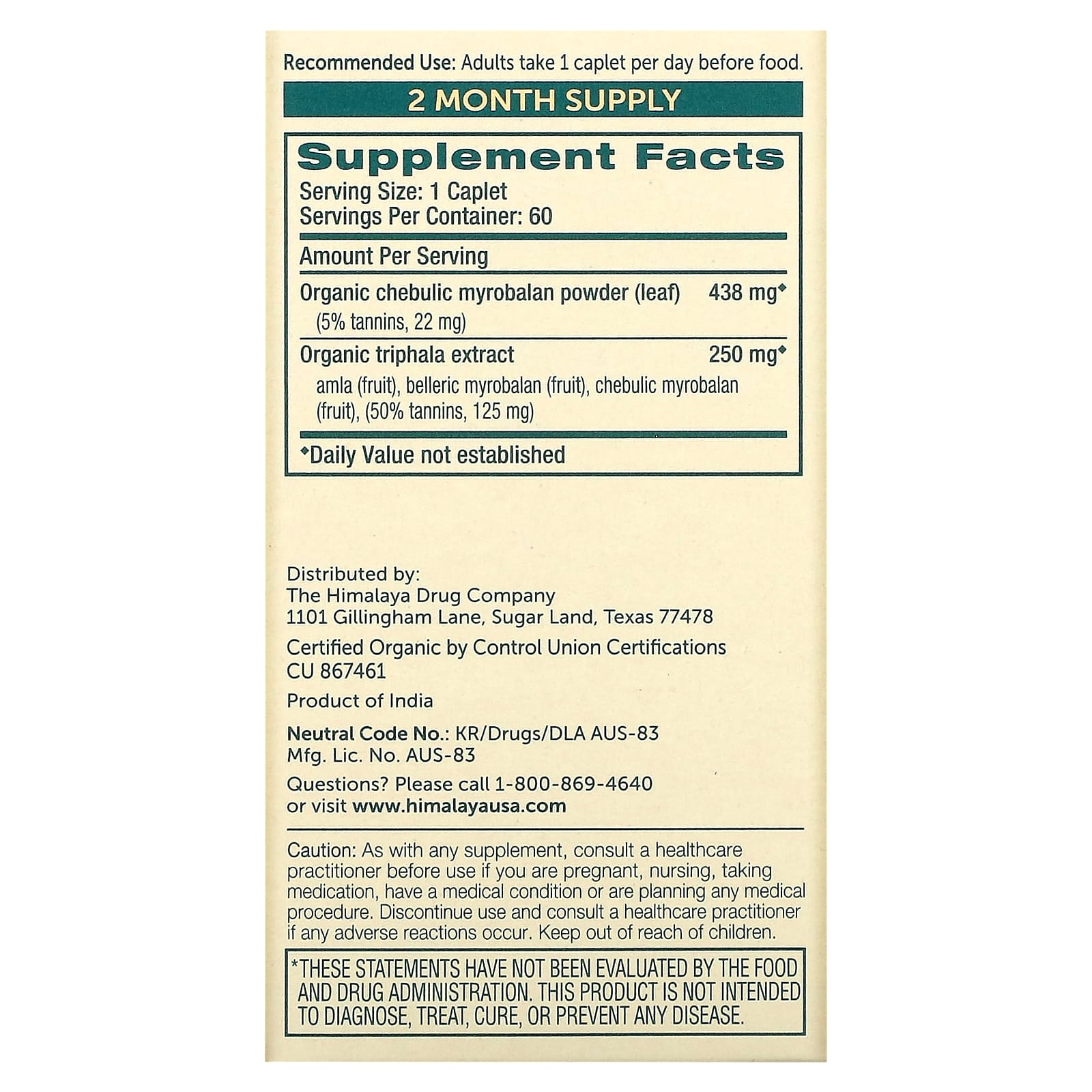 *Some information on the Himalaya, Organic Triphala, 60 Capletslabel may be missing, or it may have been written incorrectly. We work hard to keep the information accurate & up to date. Please let us know if you discover any errors.