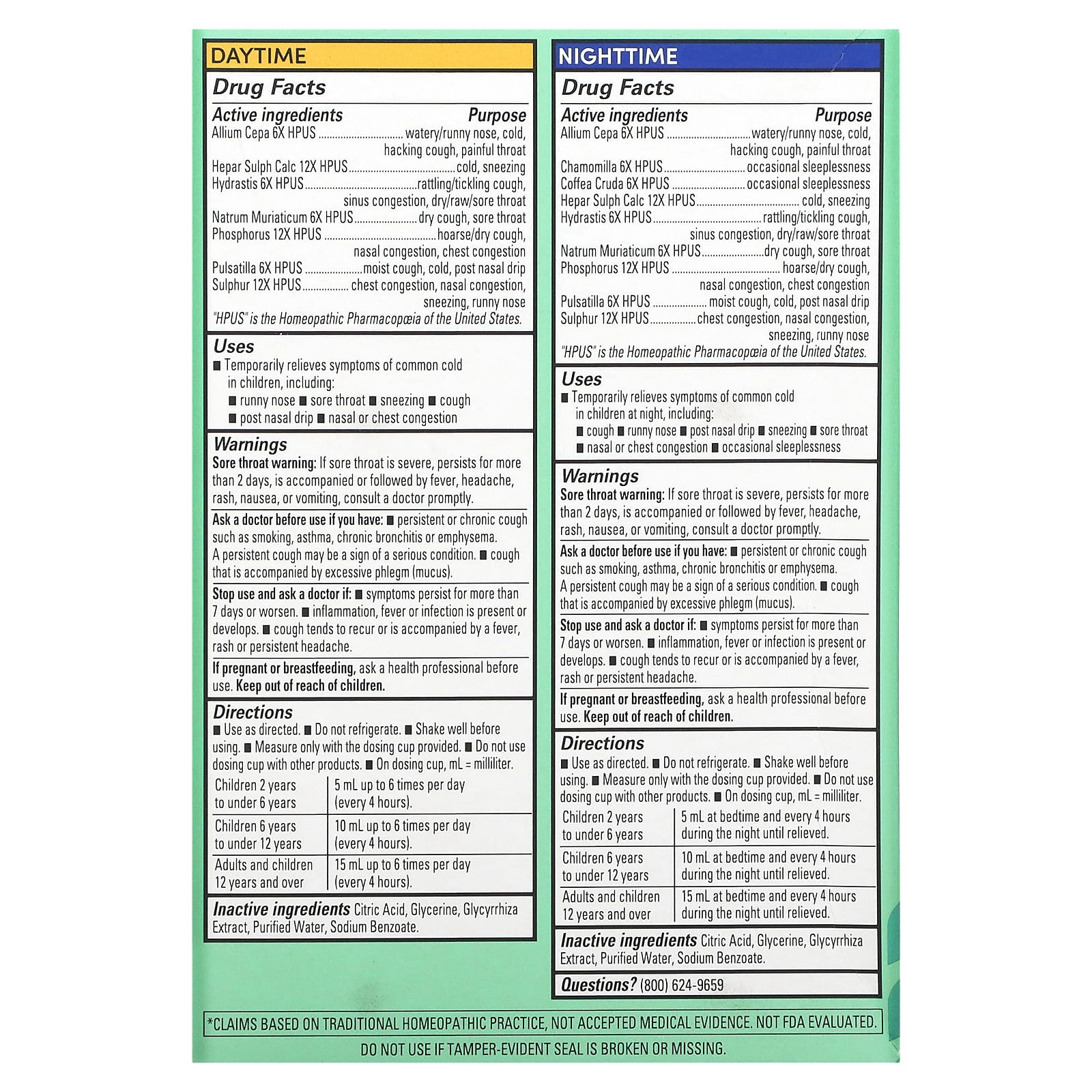 *Some information on the Hyland's Naturals, Kids, Cold & Cough Combo Pack, Daytime/Nighttime, Age 2-12 Years, 2 Bottles, 4 fl oz (118 ml) Eachlabel may be missing, or it may have been written incorrectly. We work hard to keep the information accurate & up to date. Please let us know if you discover any errors.