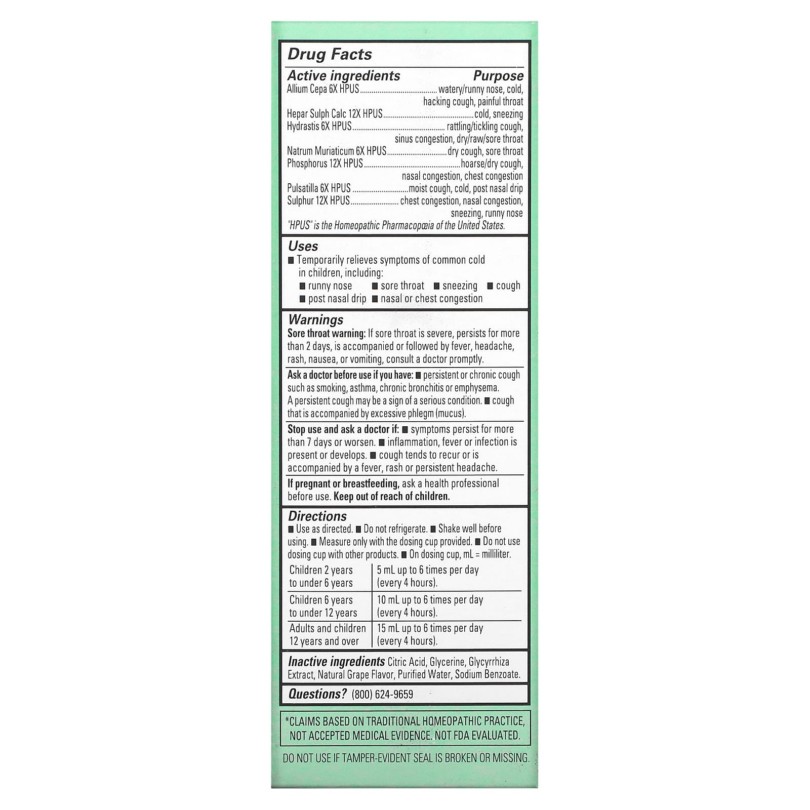*Some information on the Hyland's Naturals, Kids, Cold & Cough, Daytime, Ages 2-12, Natural Grape, 4 fl oz (118 ml)label may be missing, or it may have been written incorrectly. We work hard to keep the information accurate & up to date. Please let us know if you discover any errors.