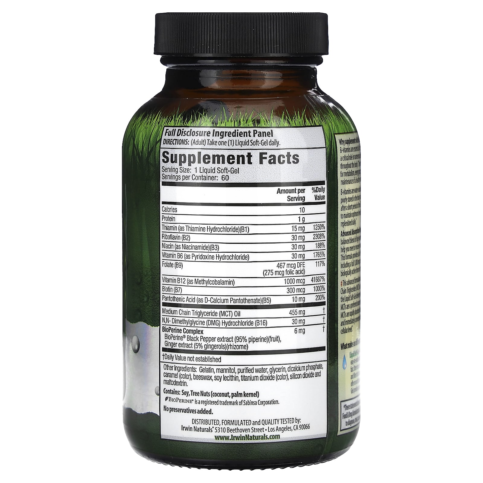 *Some information on the Irwin Naturals, Mega B-Complex with Quick Energy MCT's, 60 Liquid Soft-Gelslabel may be missing, or it may have been written incorrectly. We work hard to keep the information accurate & up to date. Please let us know if you discover any errors.
